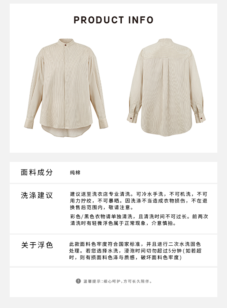 HIDEMI 原色水洗色织极简圆领廓形宽松衬衫