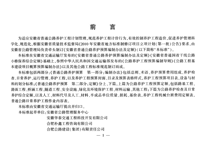 普通公路养护预算 第二部分:定额(DB 34/T 3262.2—2018)