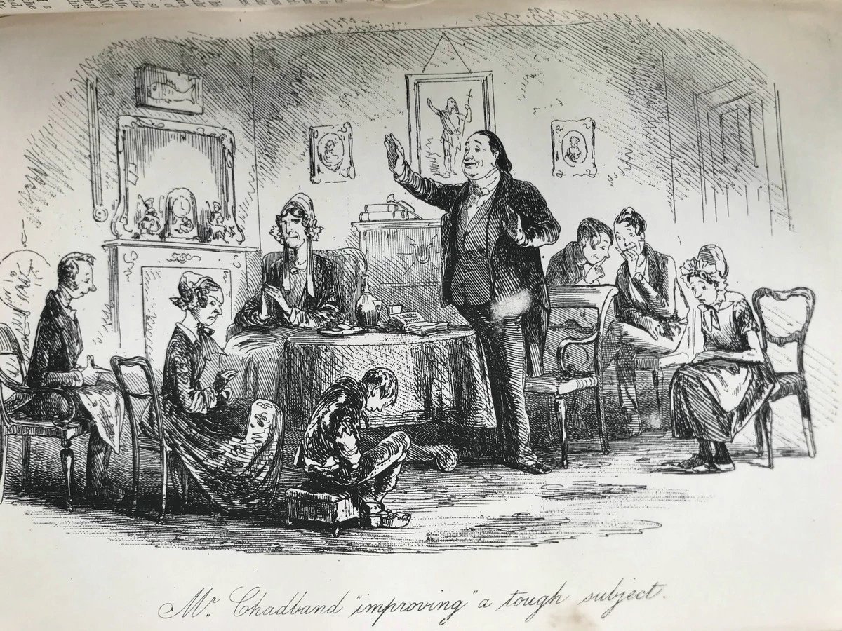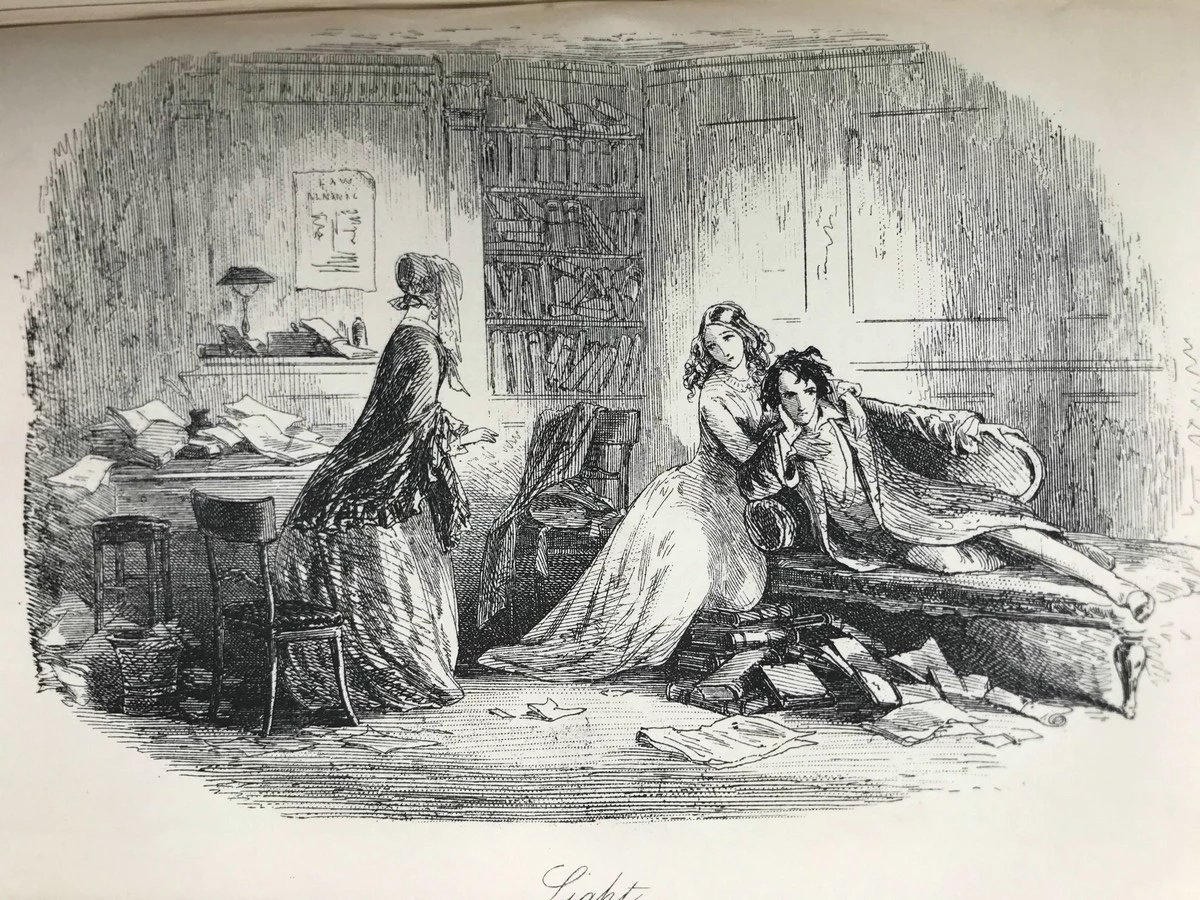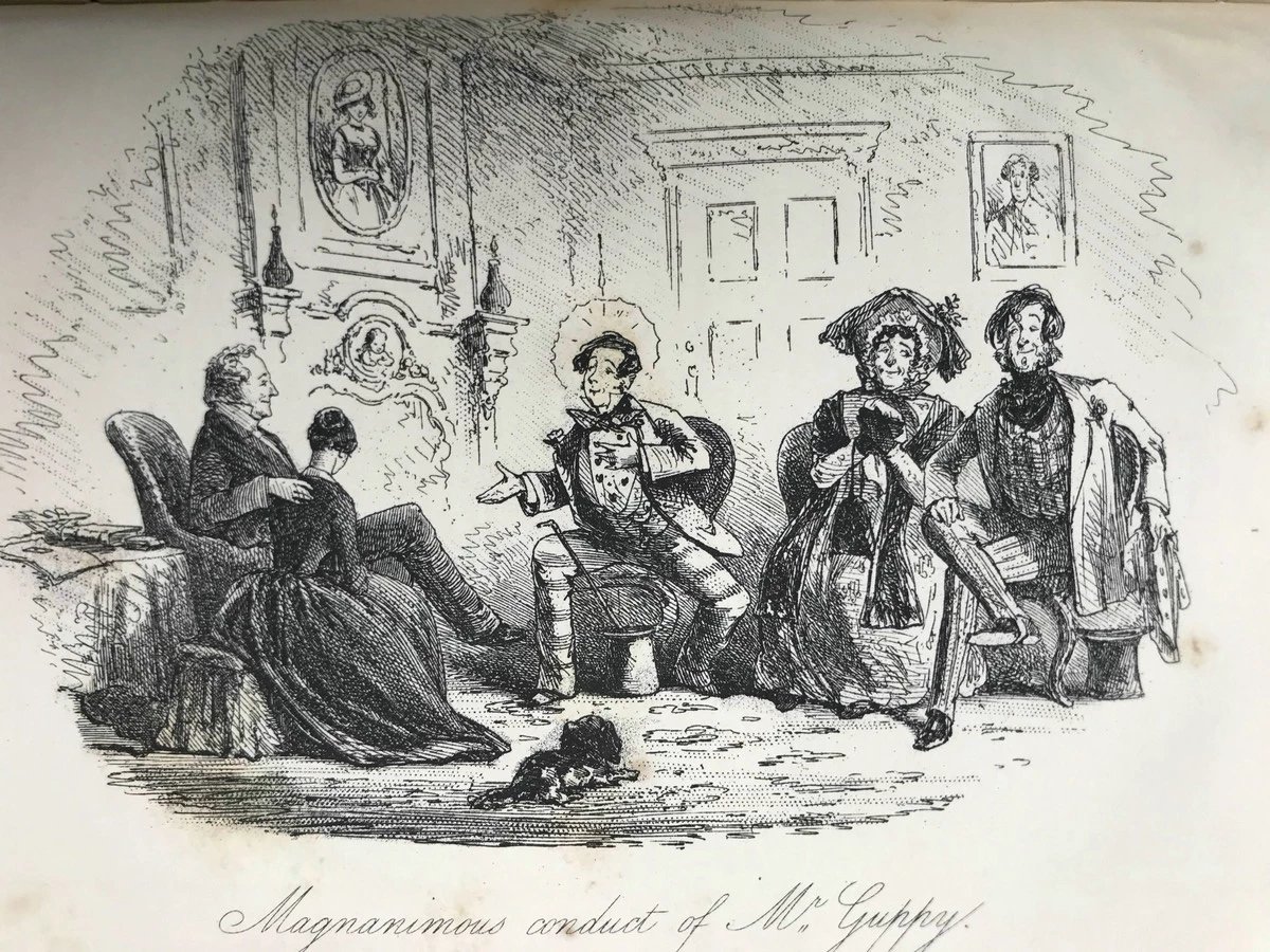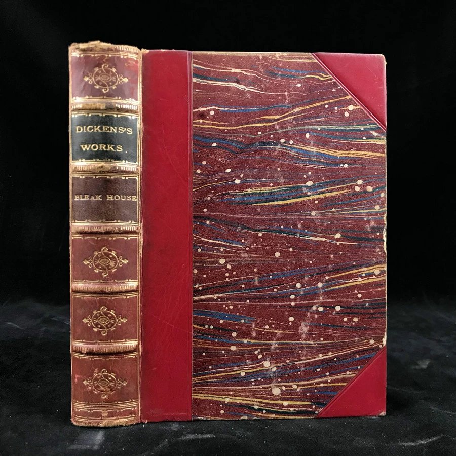 含藏书票!约19世纪后期 狄更斯《荒凉山庄》 8幅插图 真皮精装36开