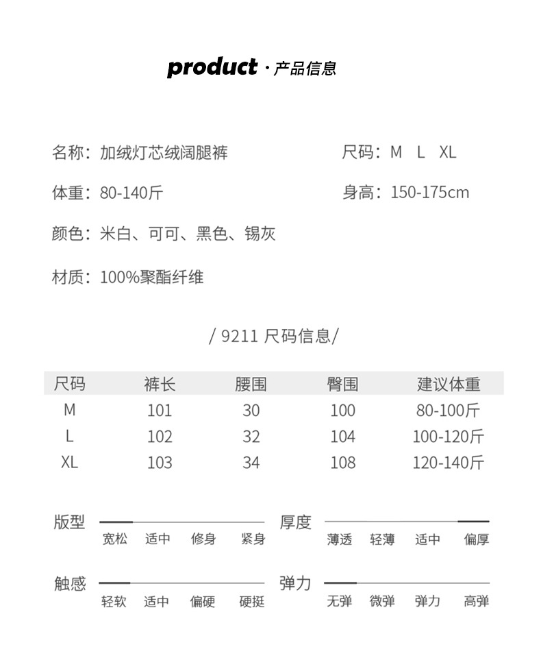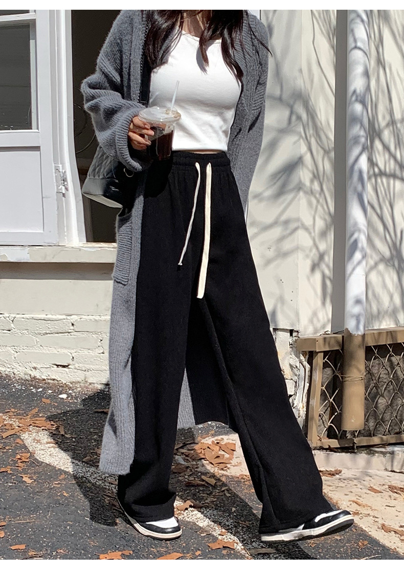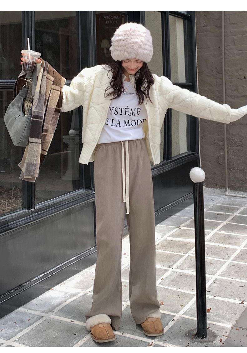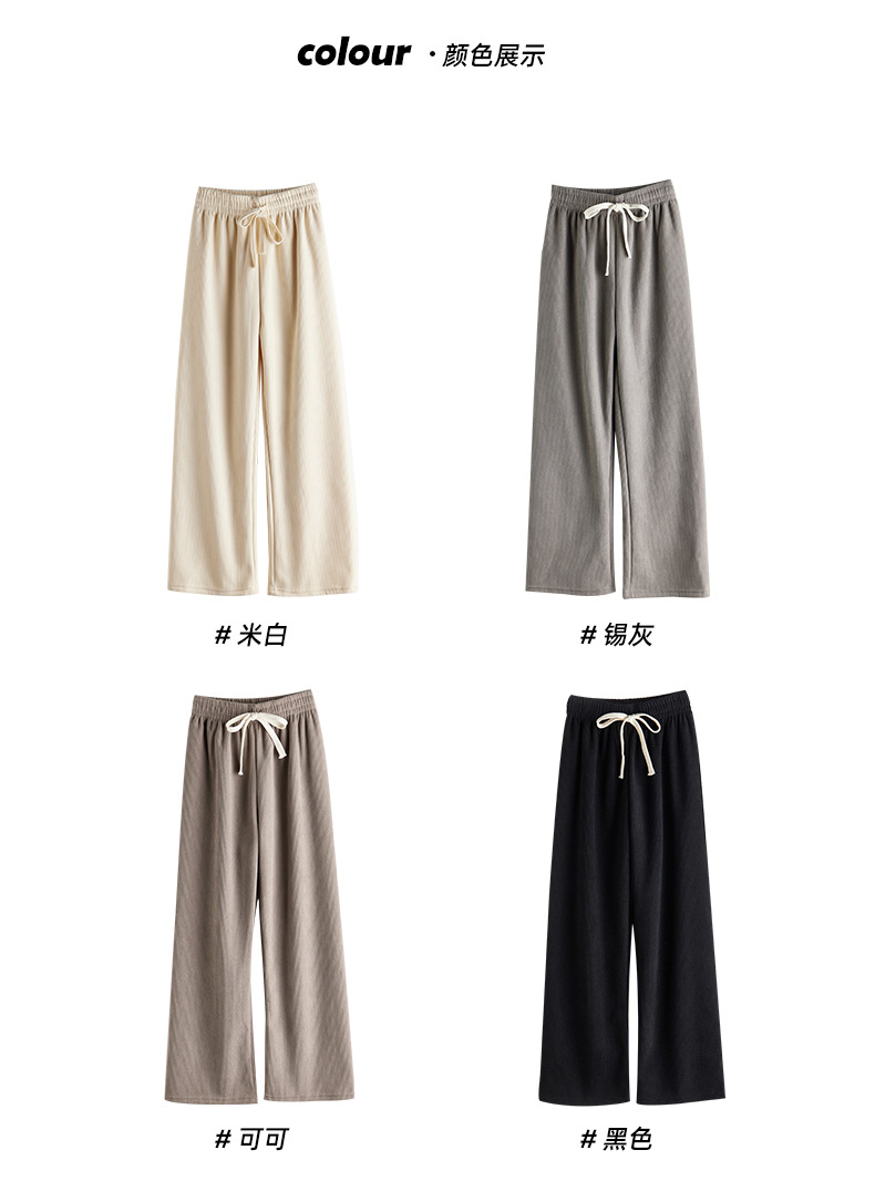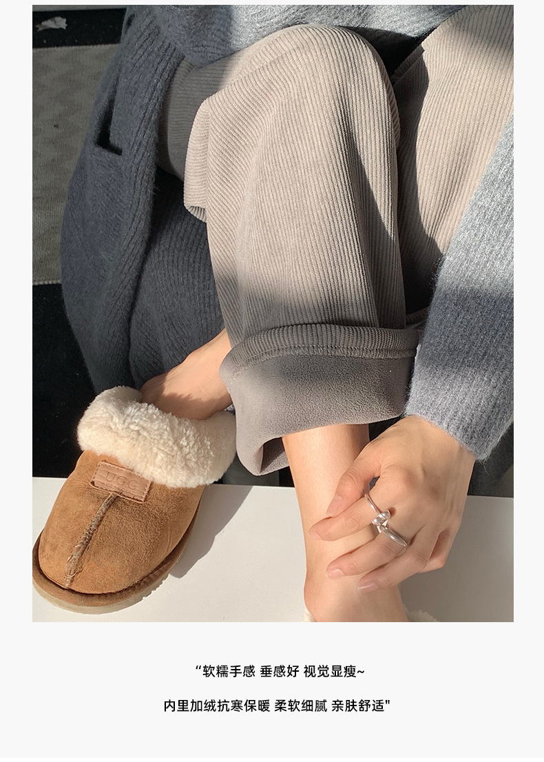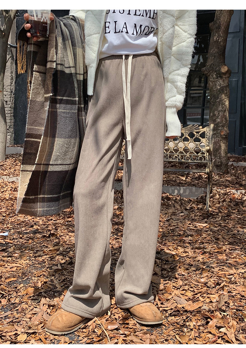 灯芯绒阔腿裤修身显瘦高腰直筒裤秋冬加厚加绒百搭休闲裤