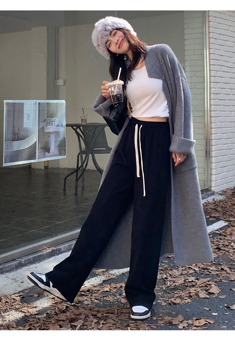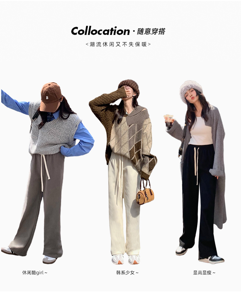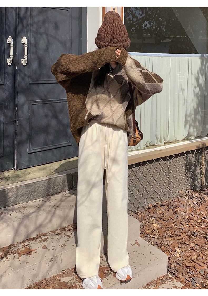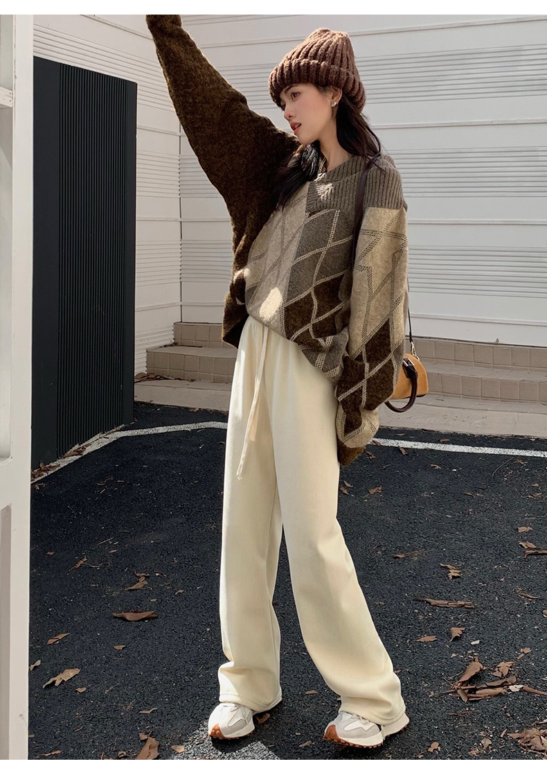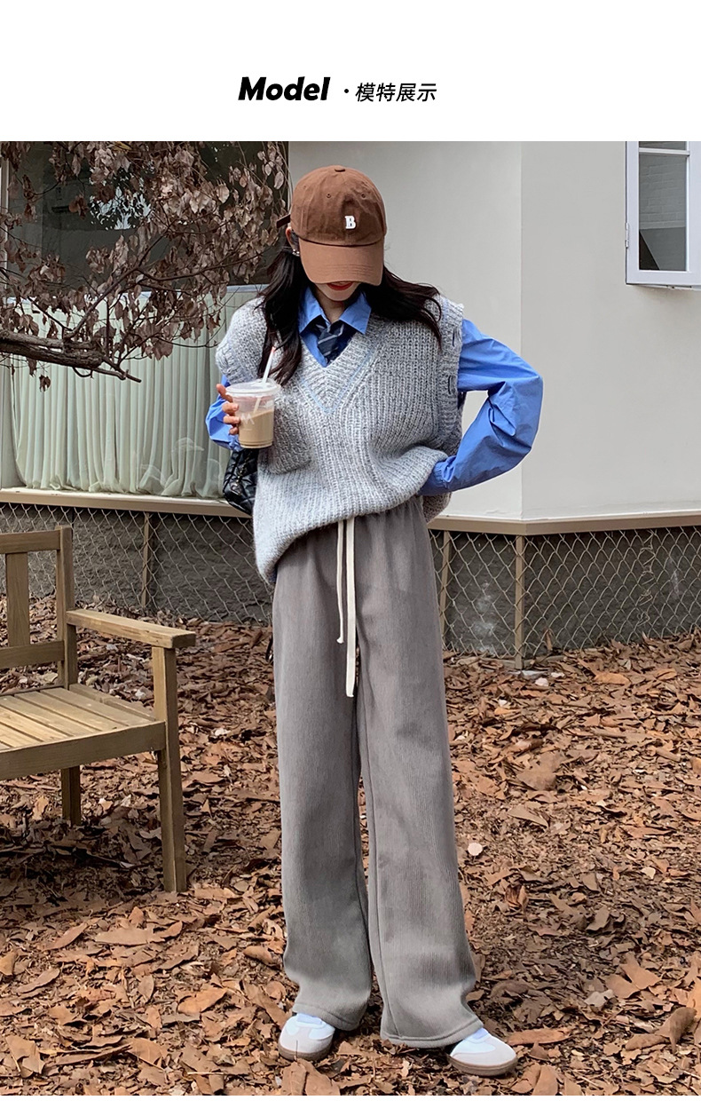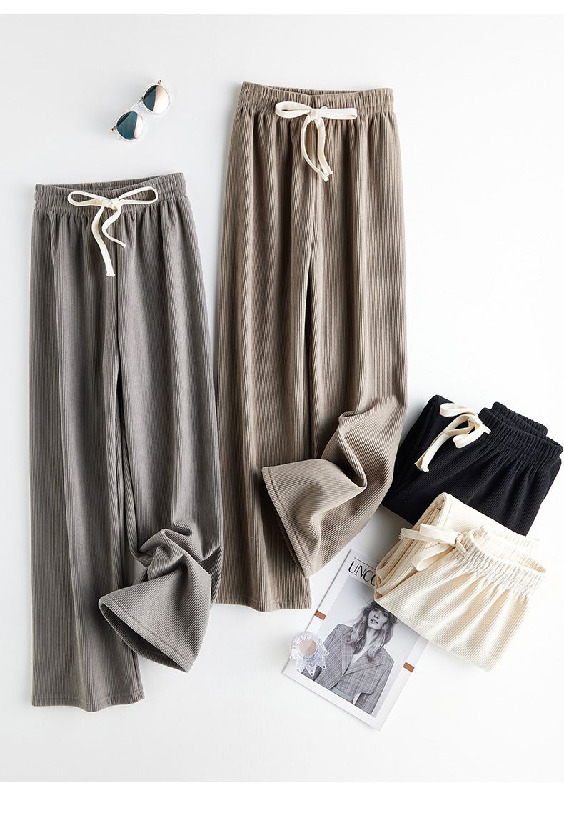 灯芯绒阔腿裤修身显瘦高腰直筒裤秋冬加厚加绒百搭休闲裤