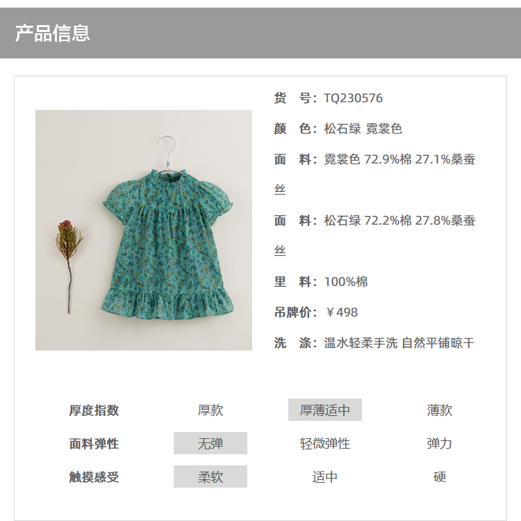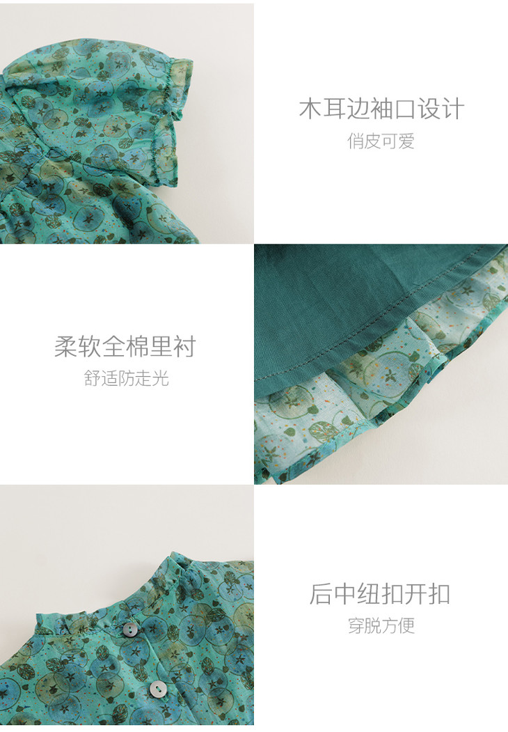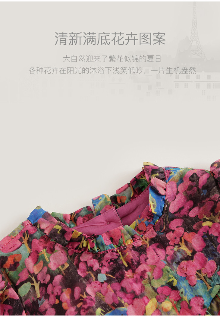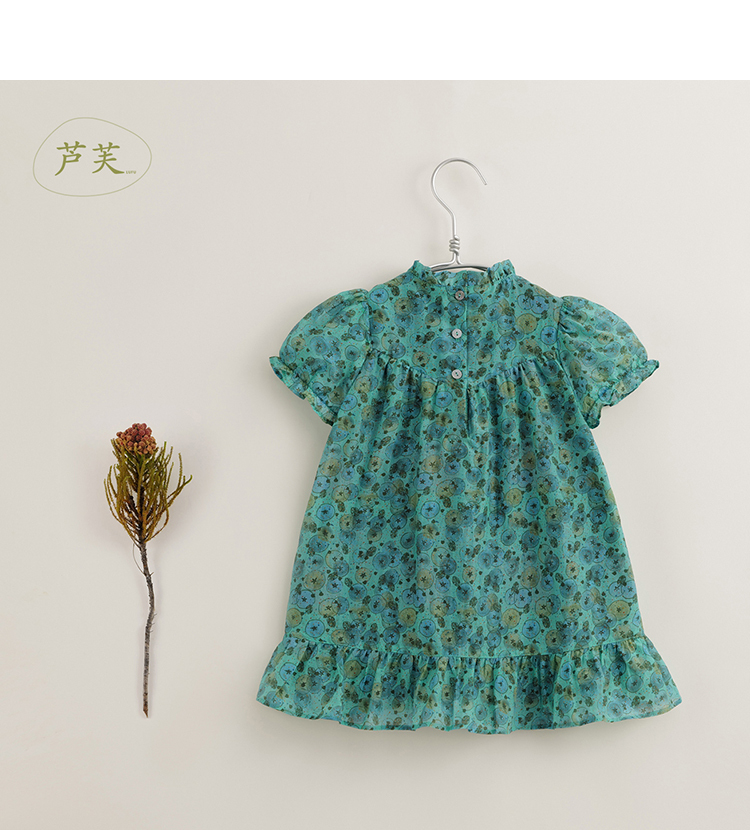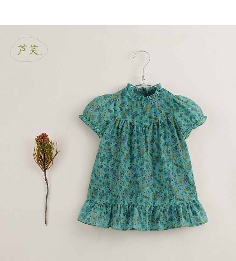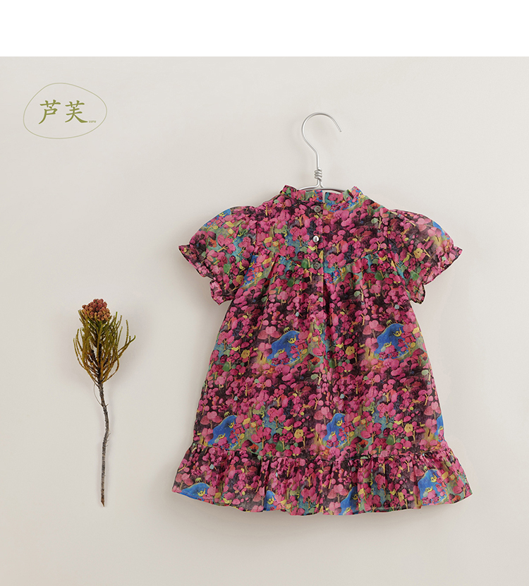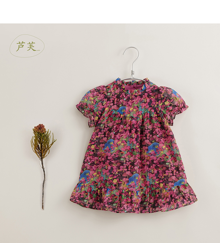 【马克珍妮 芦芙】夏装新款 女童凉爽棉真丝花卉连衣裙230576