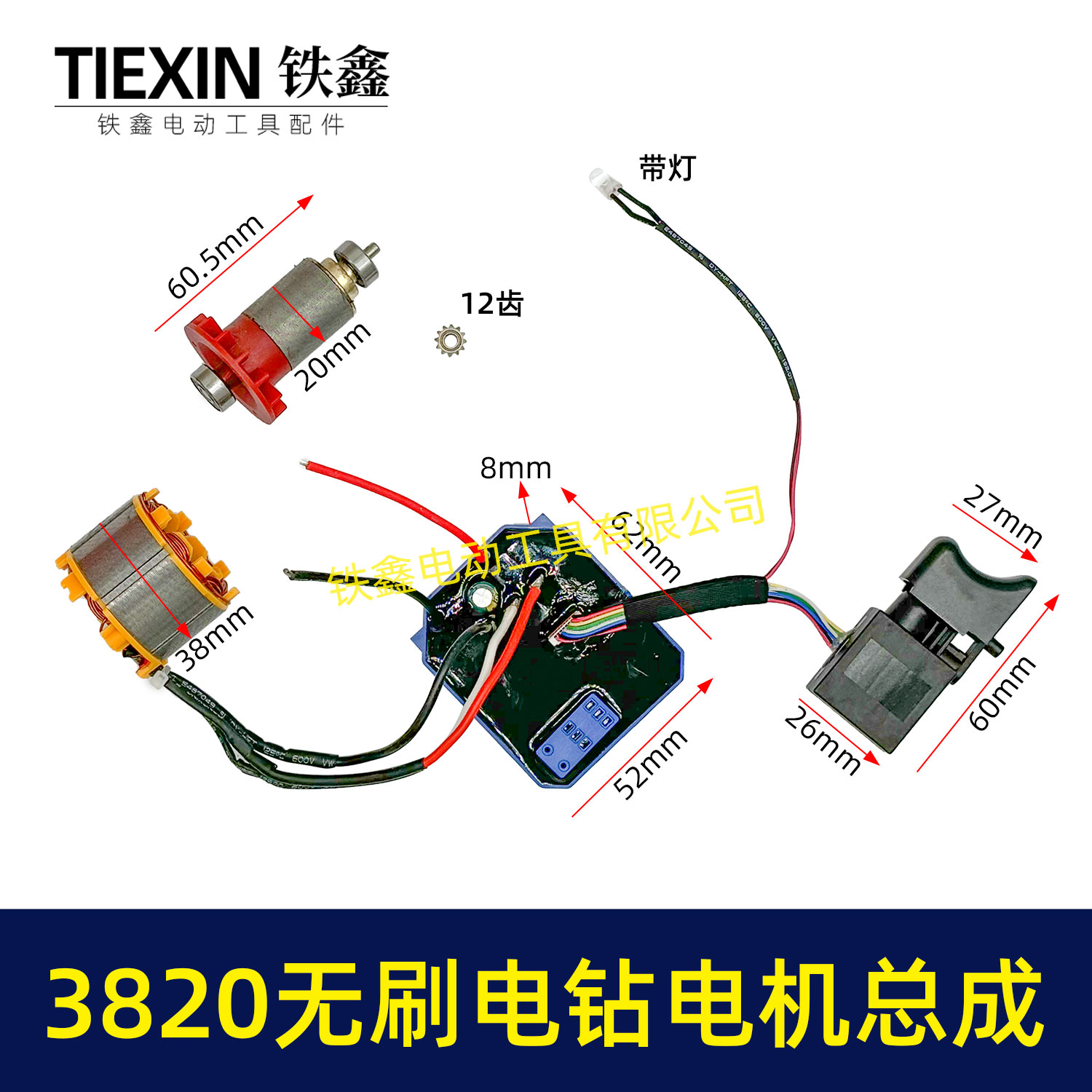 【货号07681】无刷锂电钻电机3820电机21V无刷锂电钻电机总成12齿电机