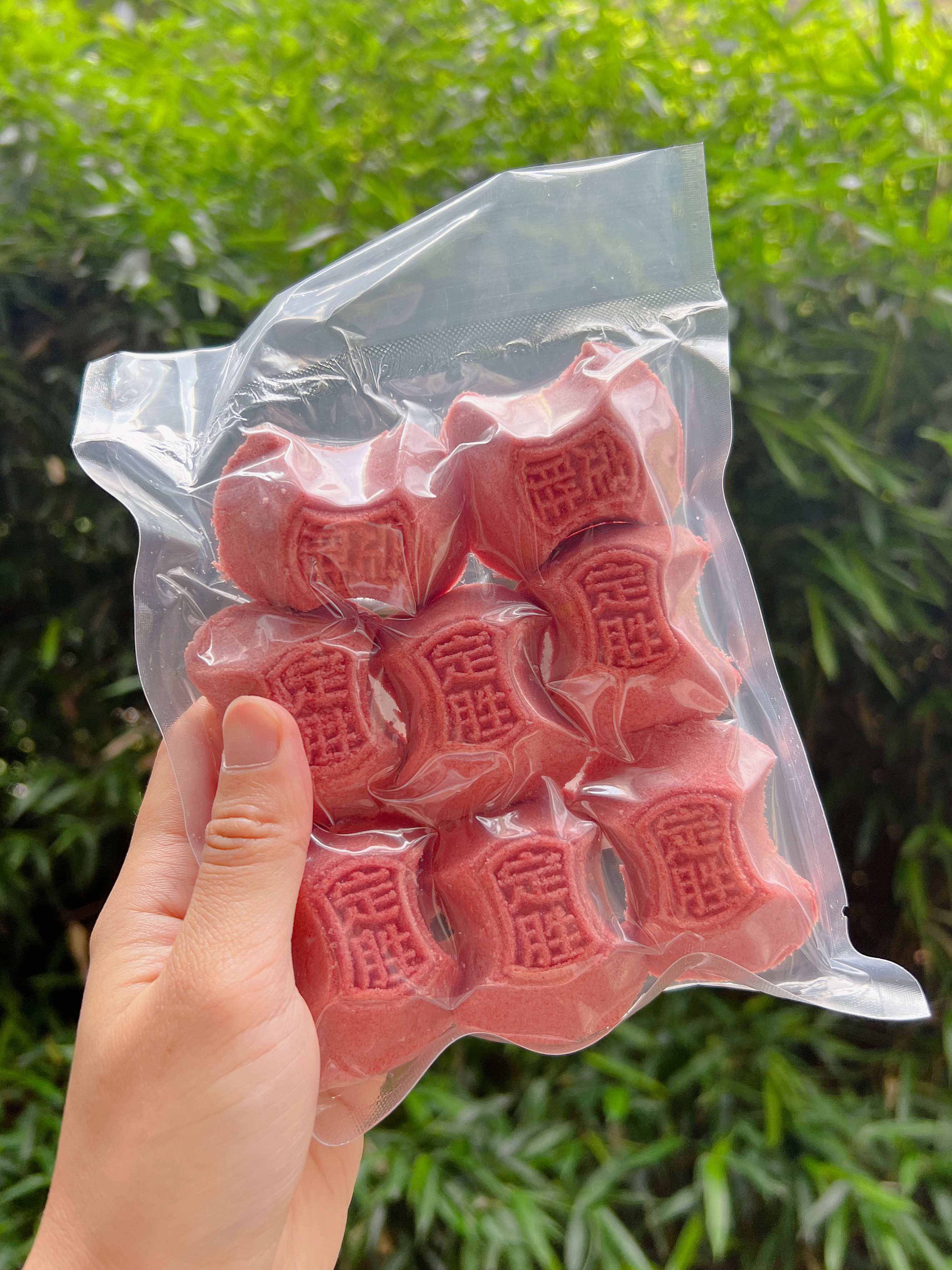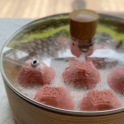 水开后上锅,蒸10分钟就好啦,红色来源于天然的红曲粉,蒸熟后的颜色,清爽干净,让人食欲大增。热腾腾刚出炉的定胜糕,凑近闻有米香,混合着香甜的豆沙味。看上去糕体松散,但入口却是湿湿的、糯糯的,有明显的米香,一定要趁热吃哦。