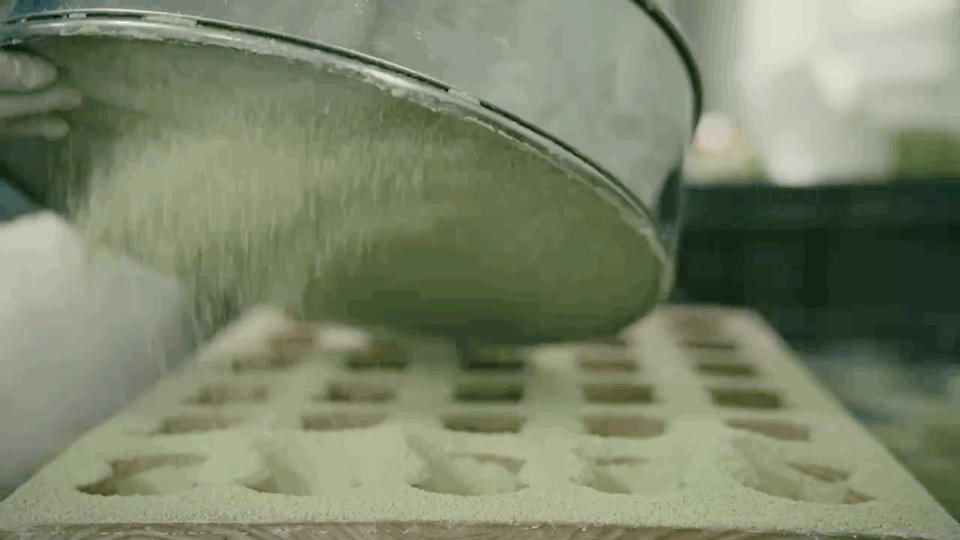 传统的定胜糕,选用上等粳米和糯米,磨成粗粉,筛入模具,中间留空.