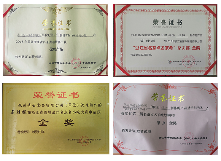 沈师傅的定胜糕获奖无数,连续多年在浙江省名茶点中获得金奖,业内广受赞誉。