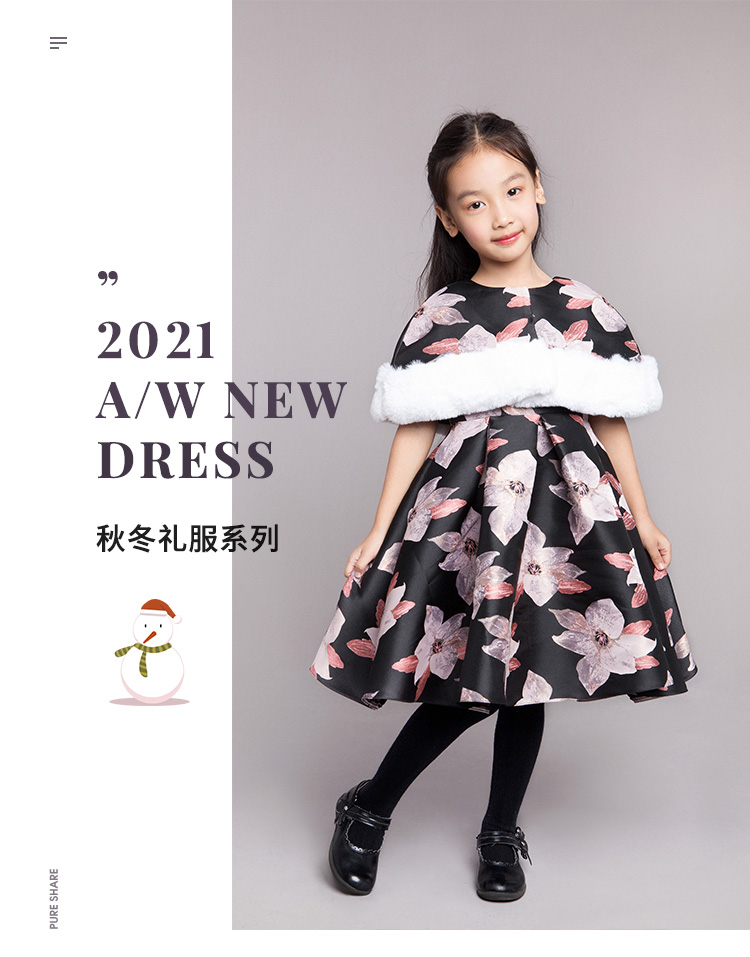 pureshare蓬纱馆公主裙女童连衣裙加绒厚秋冬裙礼服洋气毛衣裙子
