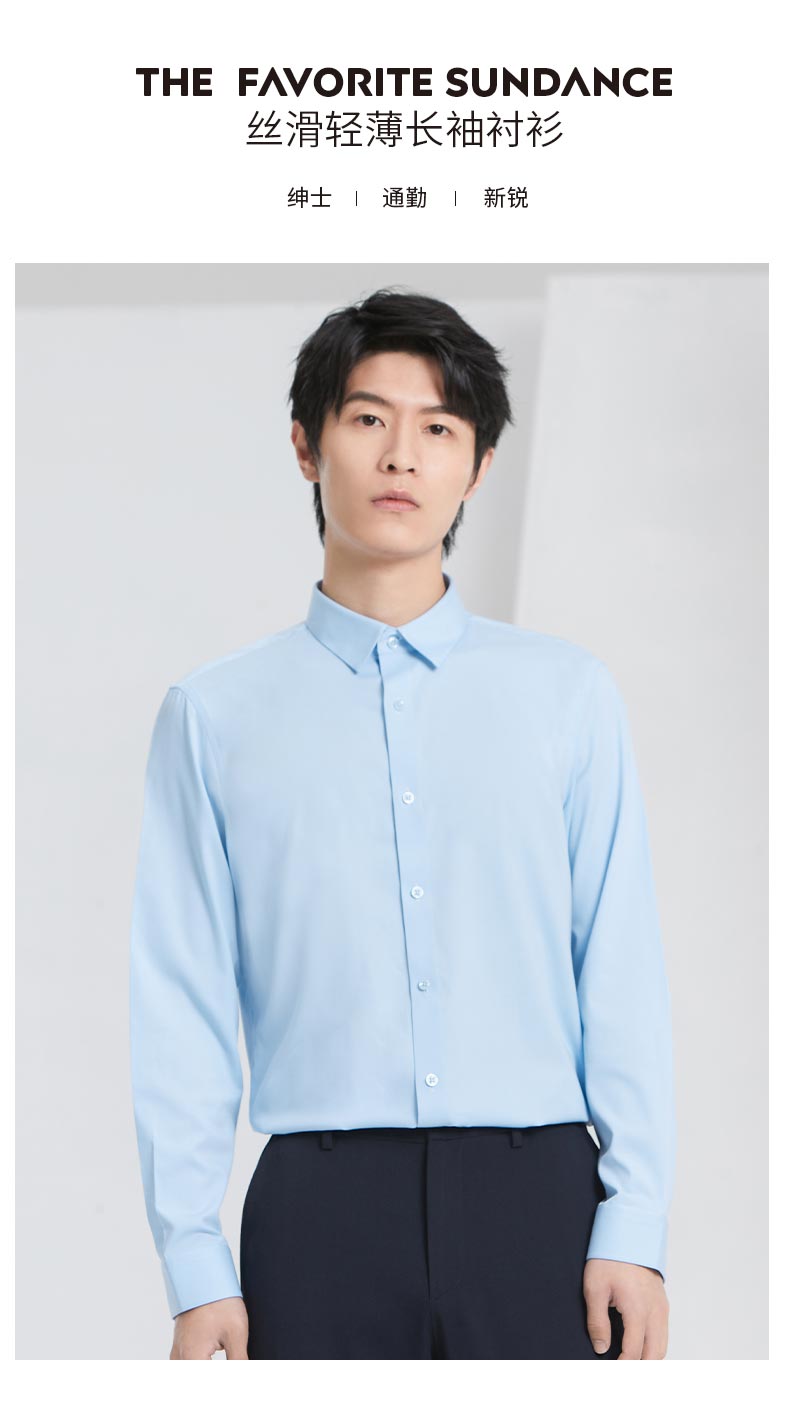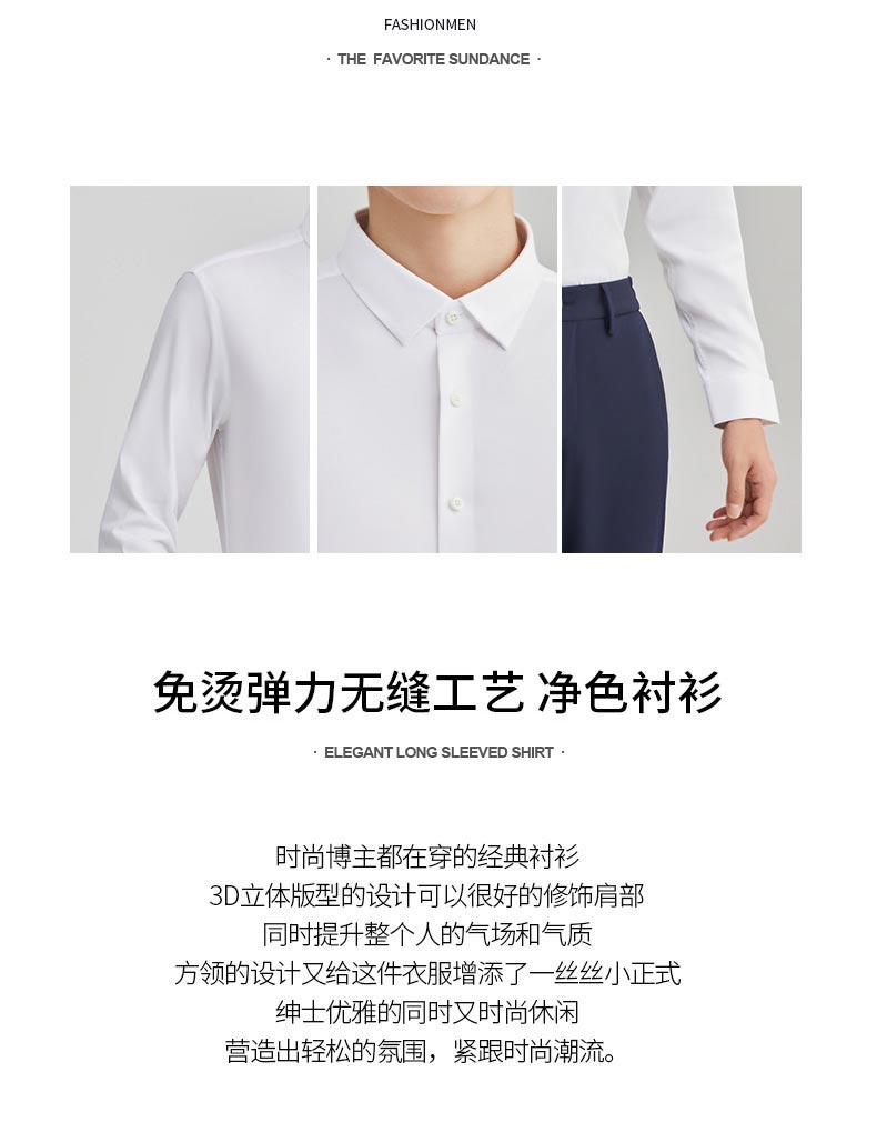 圣得西男士三防弹力长袖衬衫春季新款无缝修身薄款商务衬衣2212952806