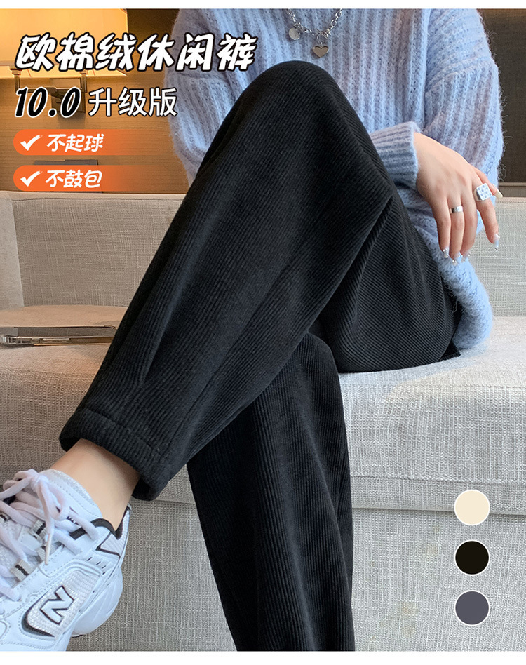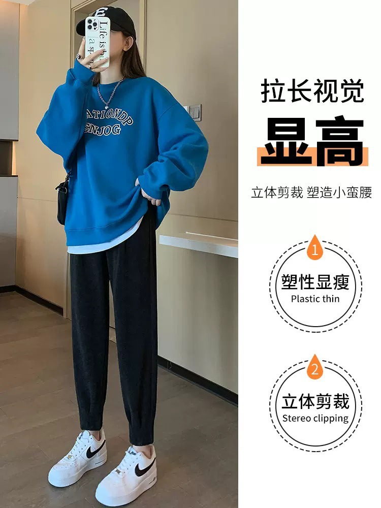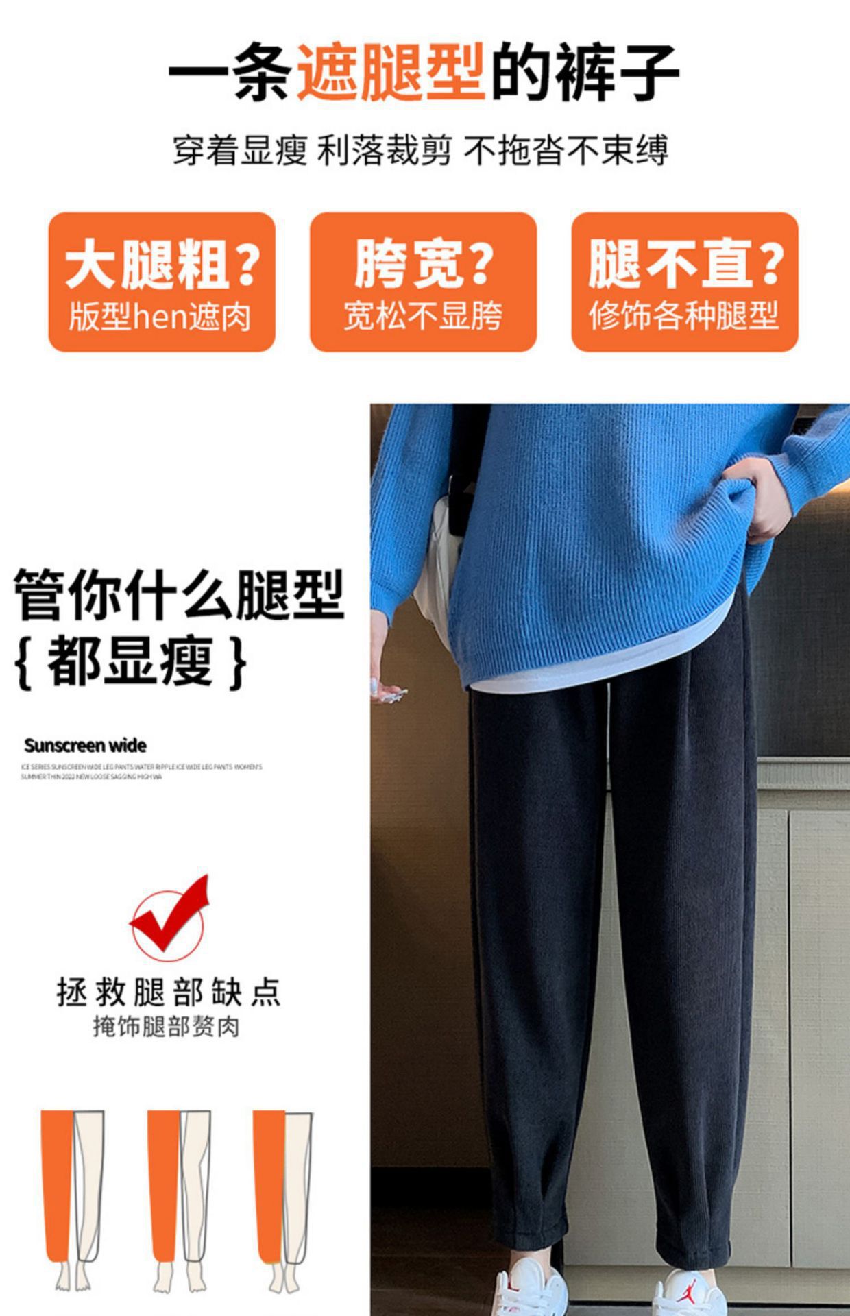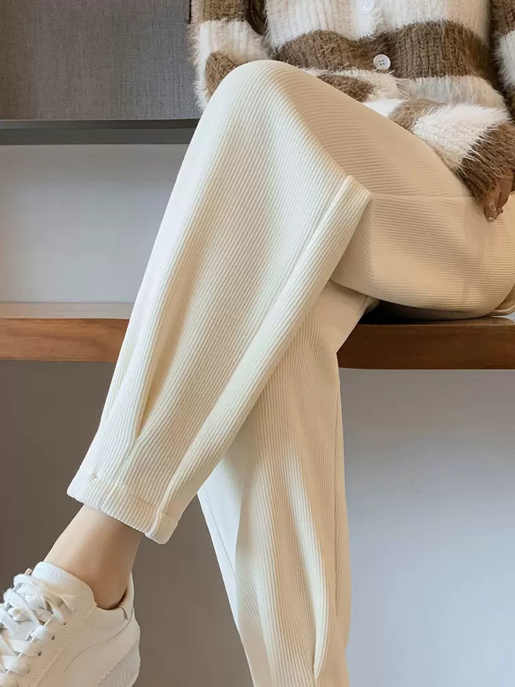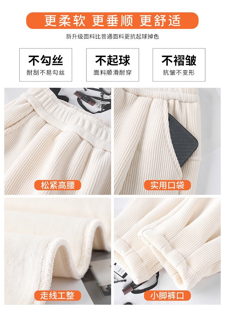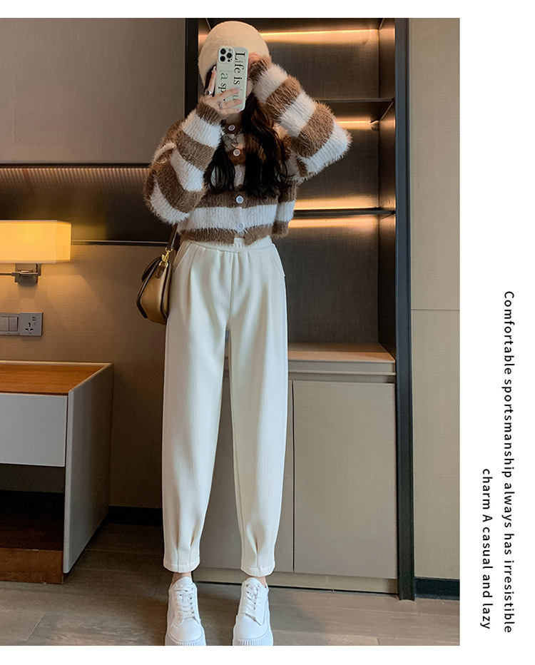 秋冬雪尼尔白色运动裤女新款加绒加厚卫裤哈伦萝卜休闲裤