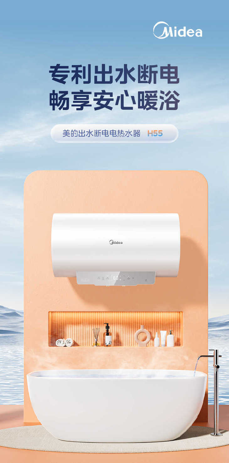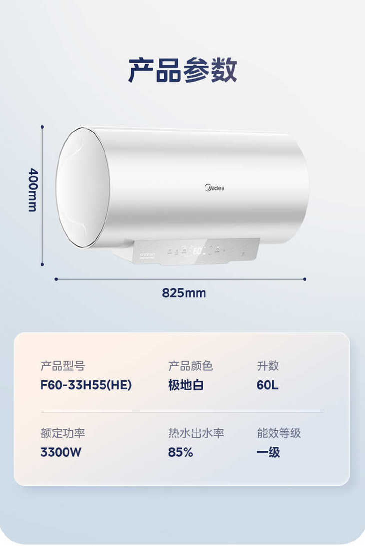 美的(510629)F60-33H55(HE) 电热水器 极地白 3300W