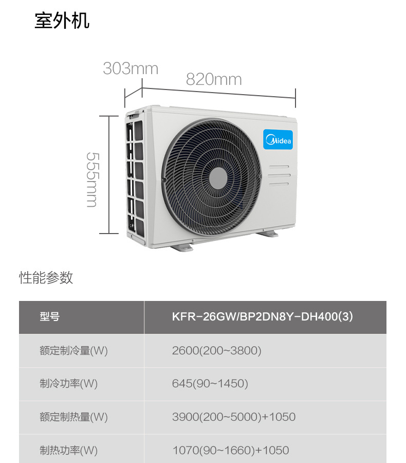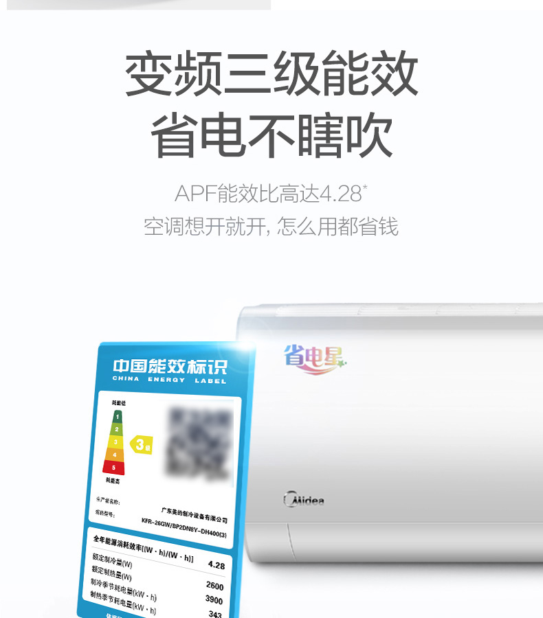 美的新能效KFR-26GW/G3-3 大1匹 变频冷暖 空调挂机 三级能效 50台起售