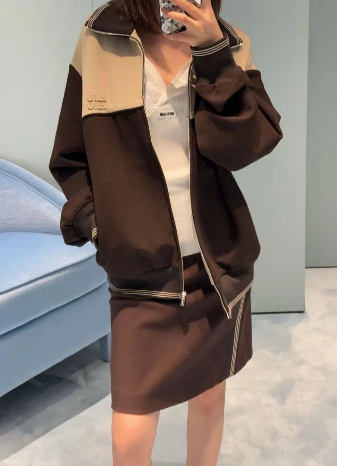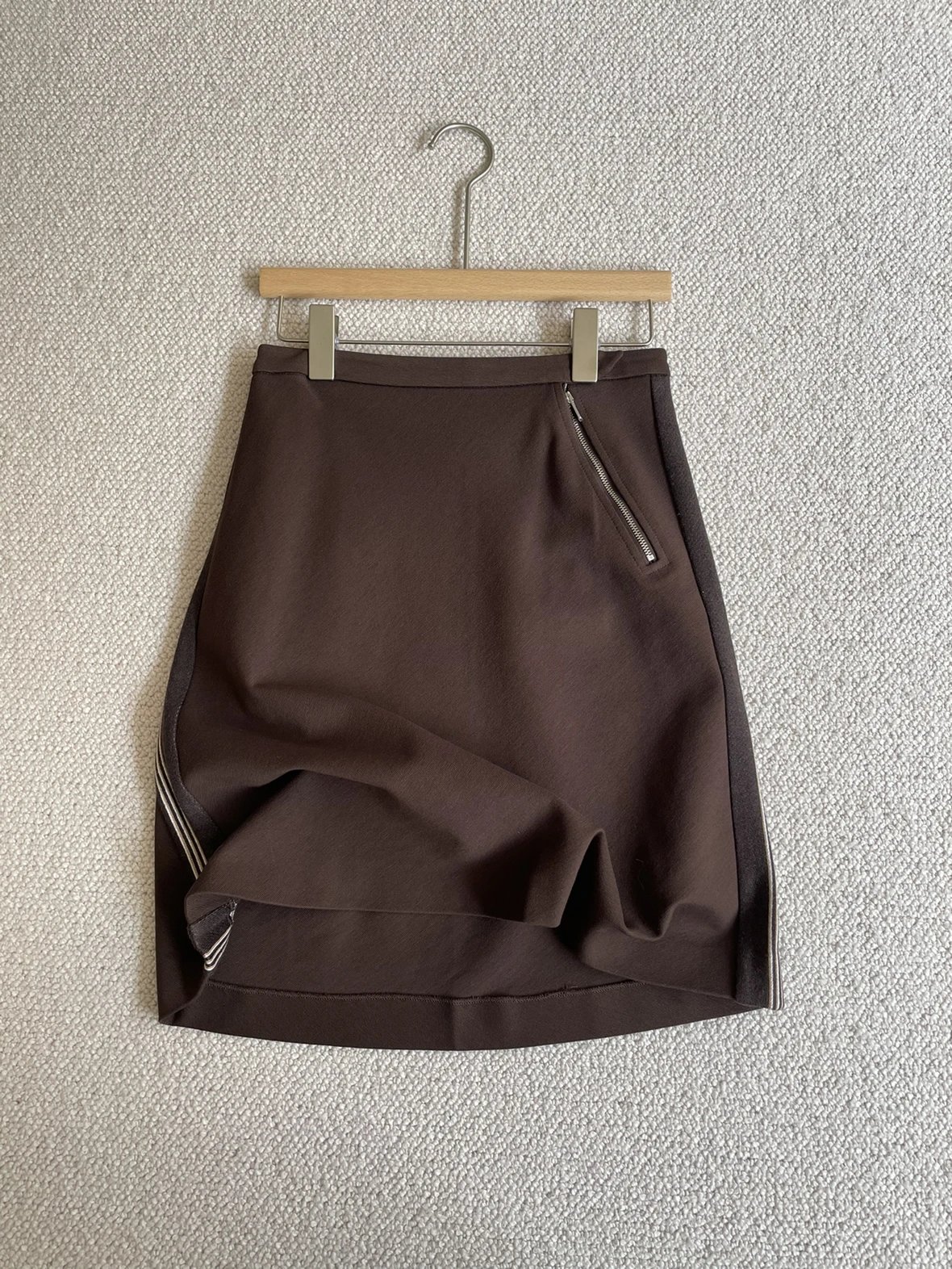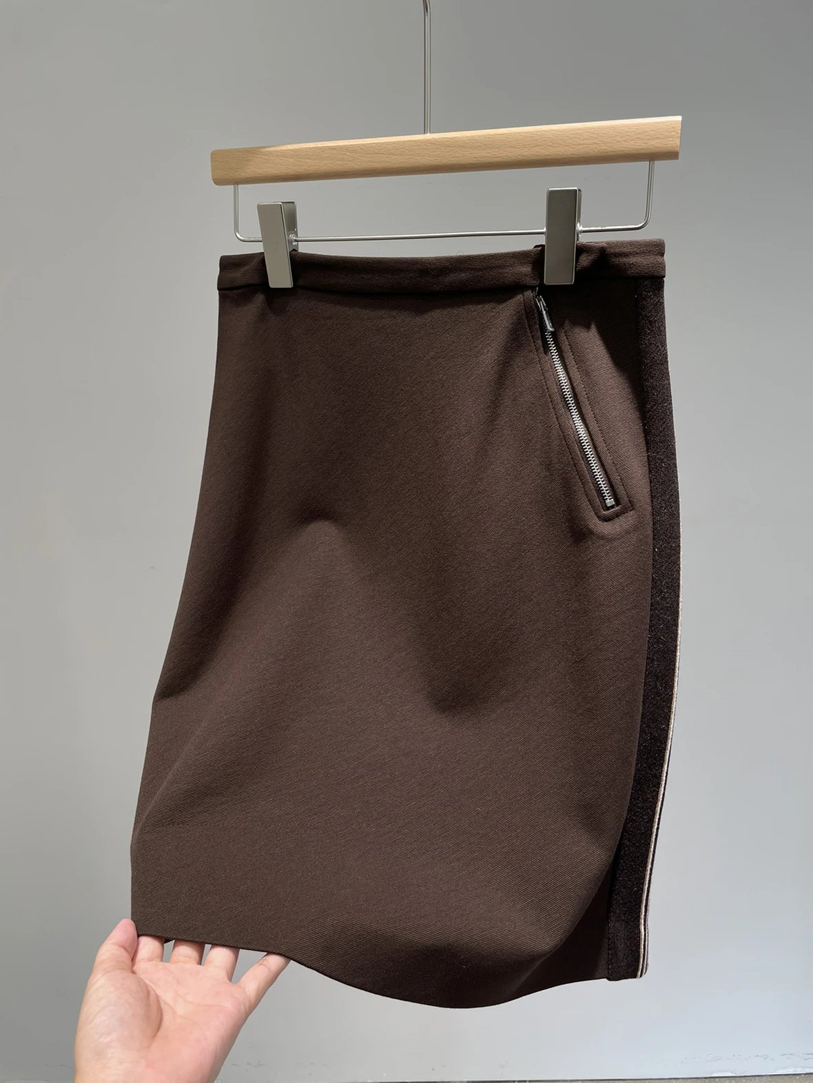 双11福利 miu斜拉链可可半裙 美拉德秋日氛围感 超显腿长