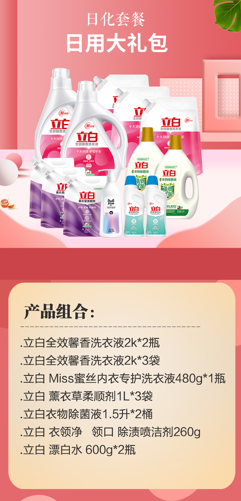 立白 日用大礼包组合套餐(洗衣液+去菌液+柔顺剂+衣领净+漂白水)