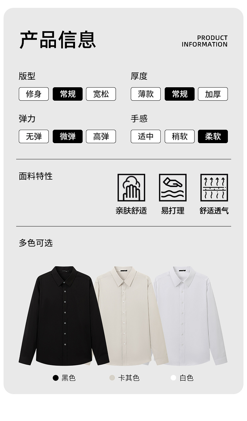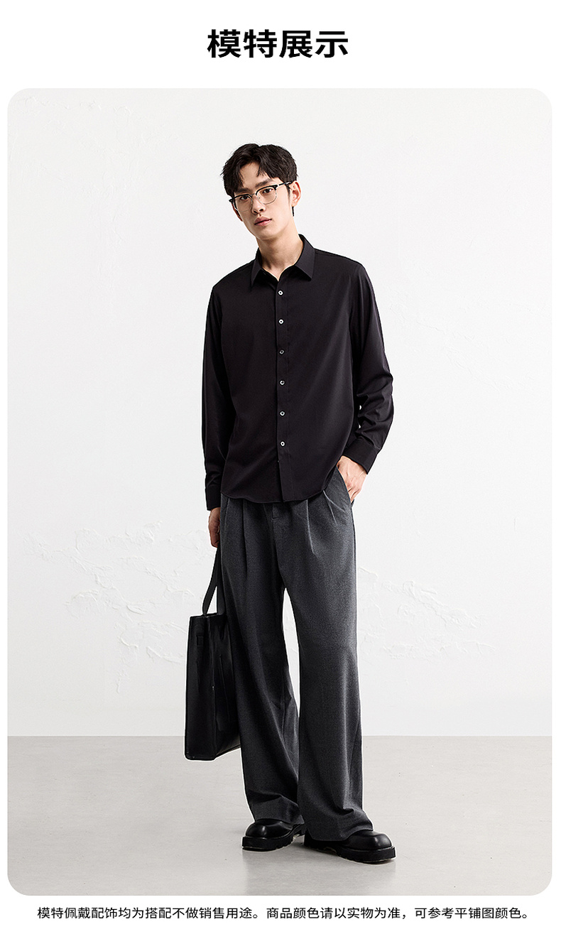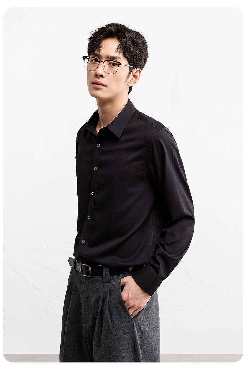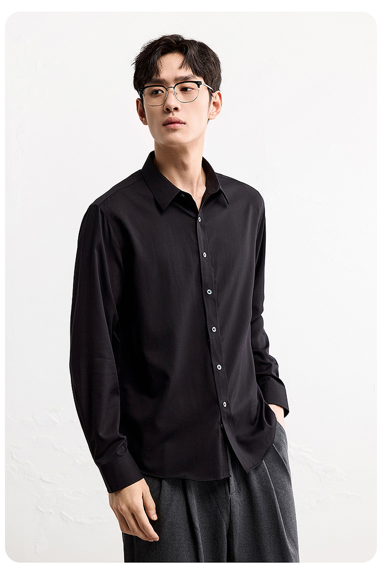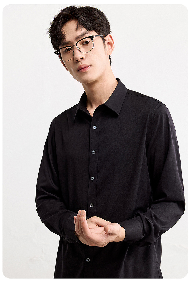 GXG男装【含桑蚕丝】25秋季简约纯色商K&C务通勤男式翻领长袖衬衫K&C