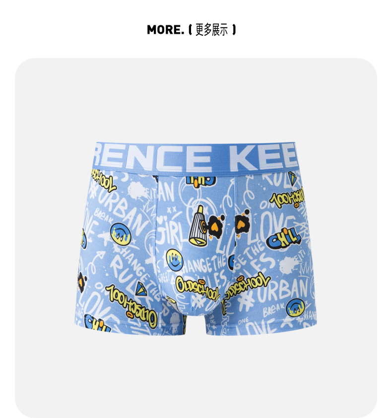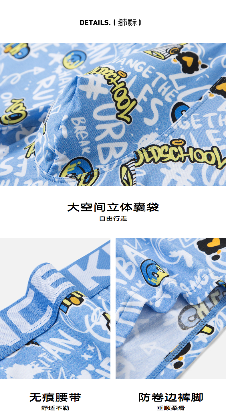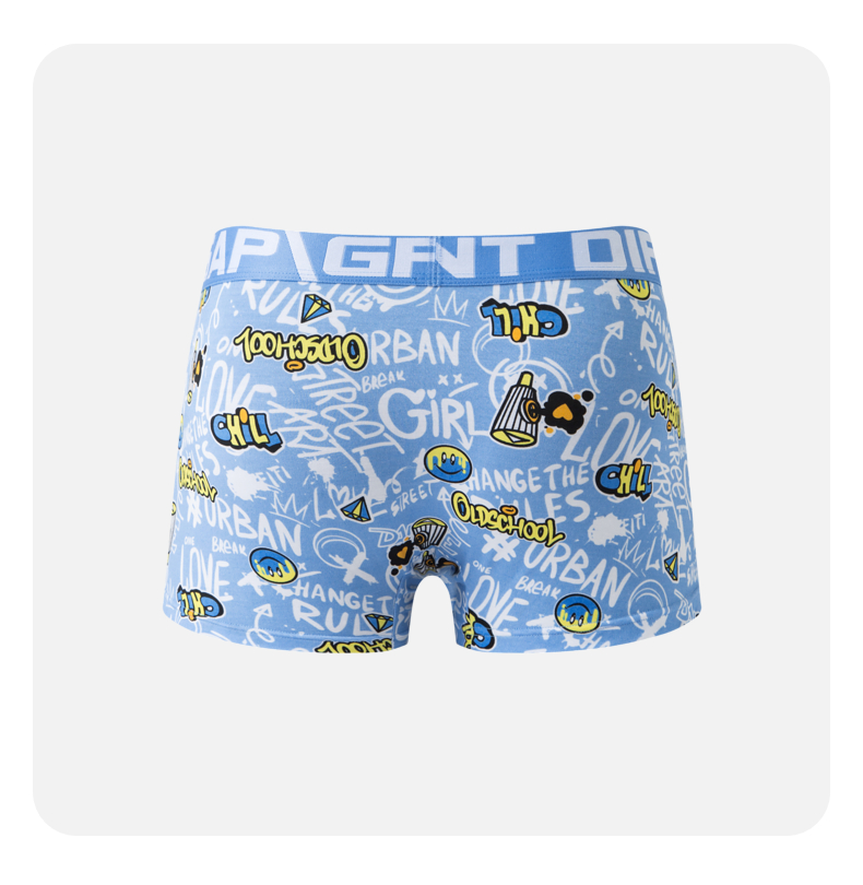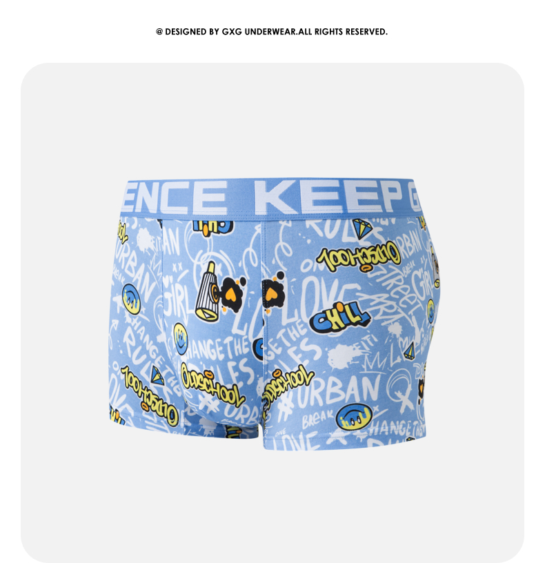 GXG男士【单条装】内裤蓝色印花内裤卡通趣味四角裤2024春夏热卖