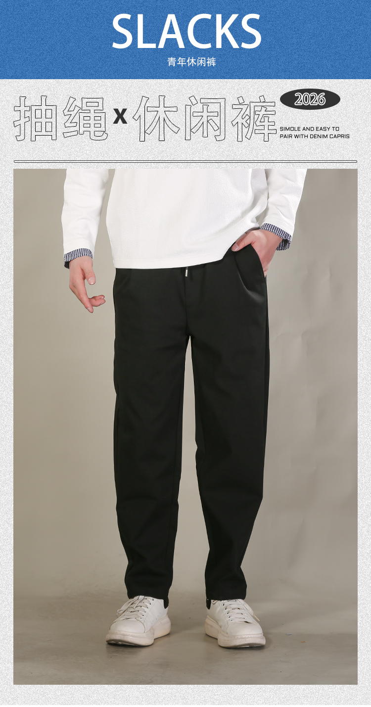 DRONKOO 2026 花色抽绳左袋侧唛错落锁链纹理针织中厚休闲长裤