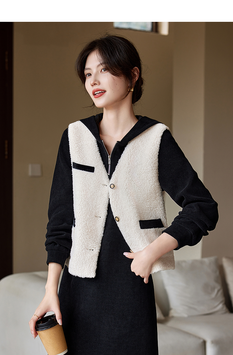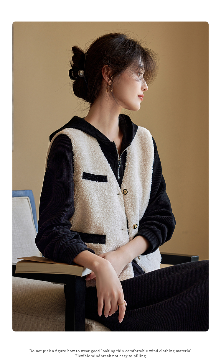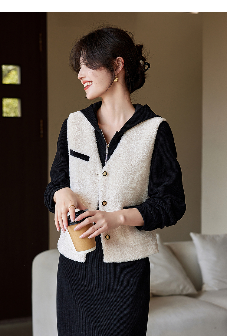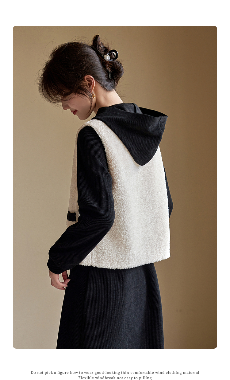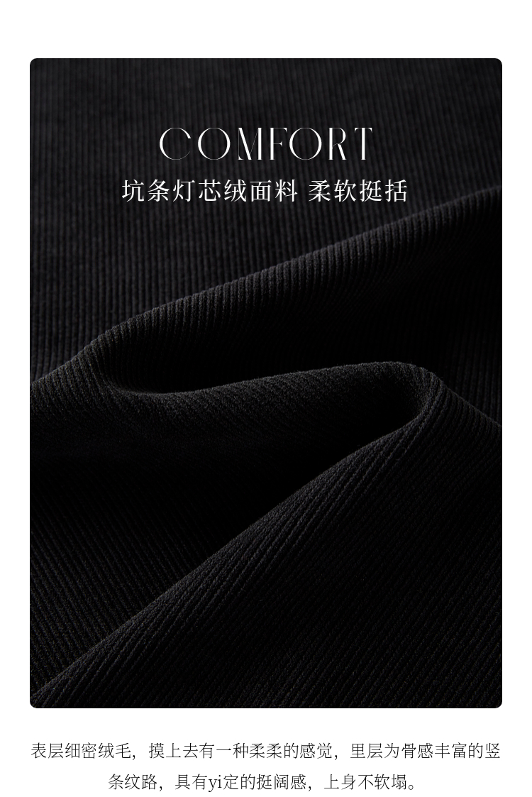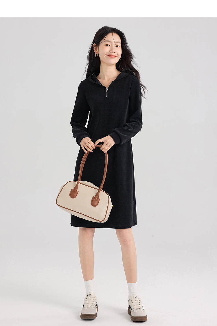 【年终特卖】熙世界慵懒风连帽卫衣裙女秋冬2025新款黑色坑条灯芯绒直筒连衣裙
