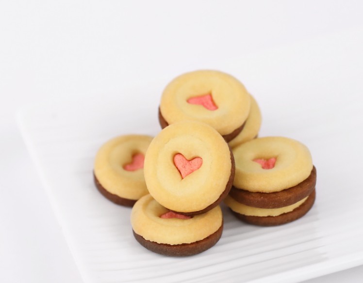 220g 巧客芳 爱心夹心圆饼干 草莓味/巧克力味 装饰饼干休闲零食