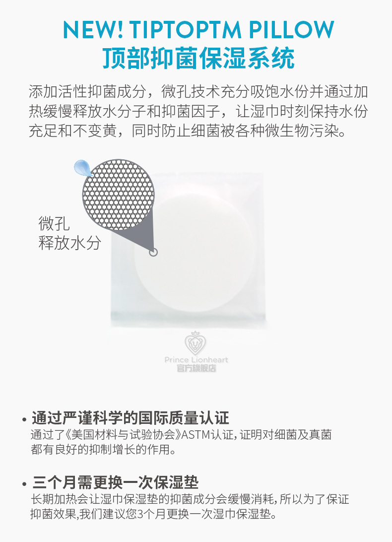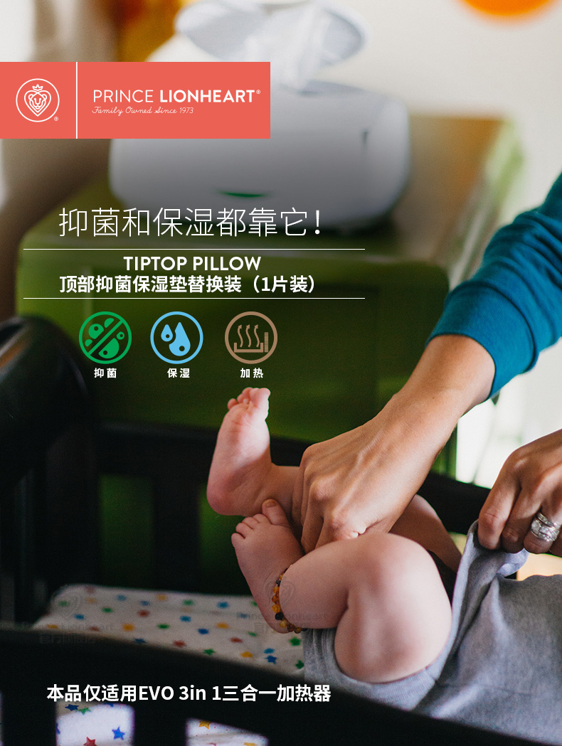 Prince Lionheart 美狮宝EVO湿巾加热器顶部抑菌保湿垫1片替换装