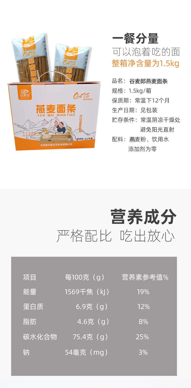 沽源县 谷麦郎 纯燕麦面条盒装 1.5kg/盒