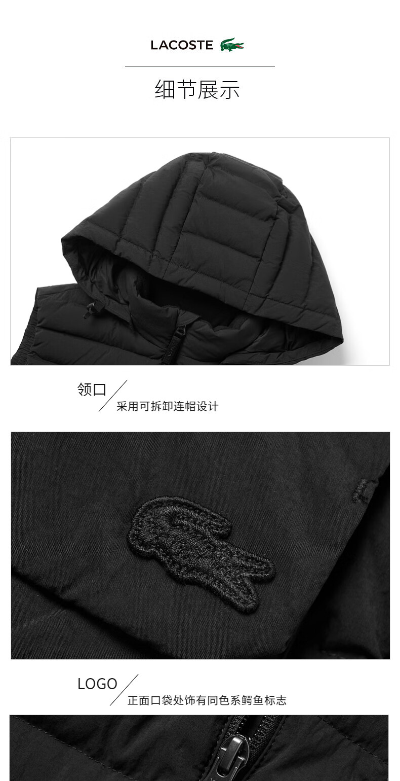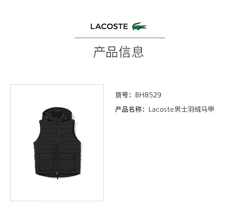 【海南专供价】Lacoste法国鳄鱼男士新款连帽可拆无袖休闲马甲外套BH8529-98