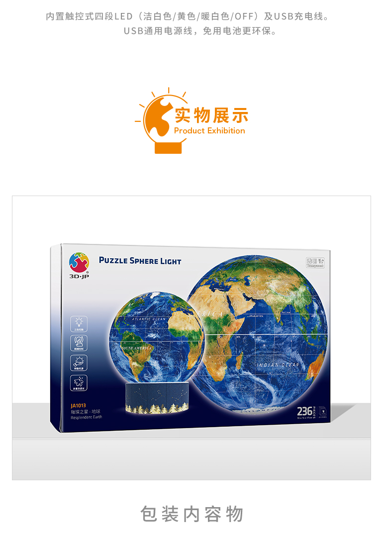 6寸236片 灯光球拼图 塑料拼图 JA1013 璀璨之星-地球