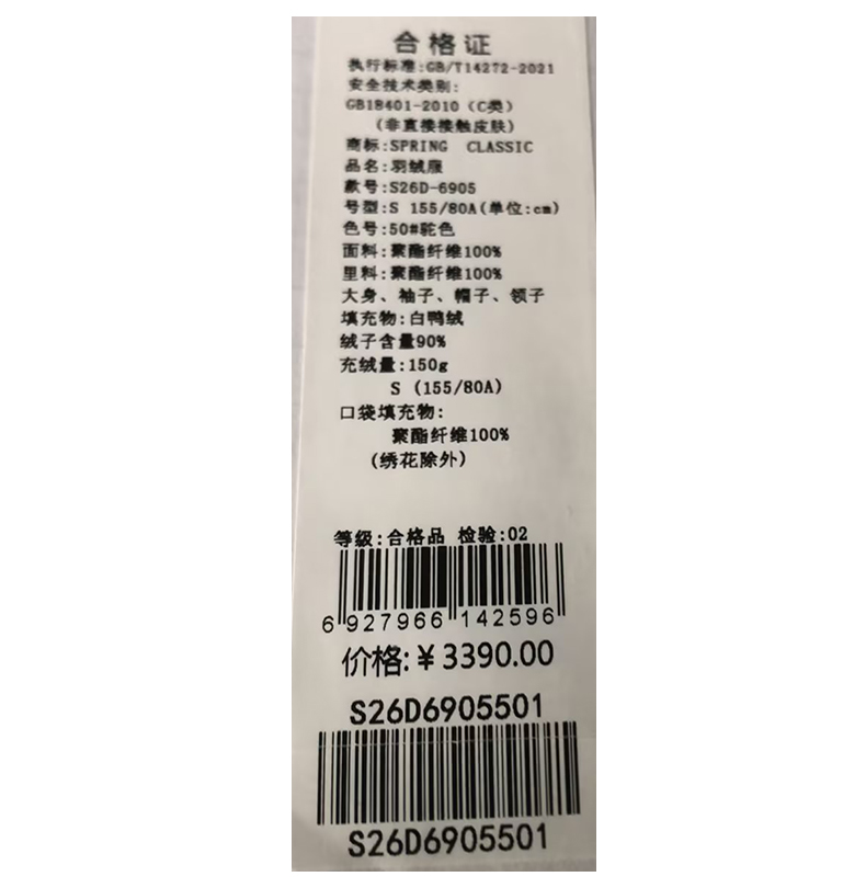 西贝伦羽绒服S26D6905