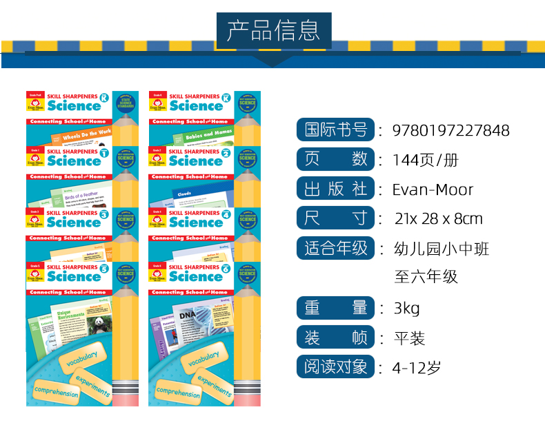 【兰精灵优选】Evan-Moor Skill Sharpeners Science 技能铅笔刀科学练习册 美国加州原版教辅