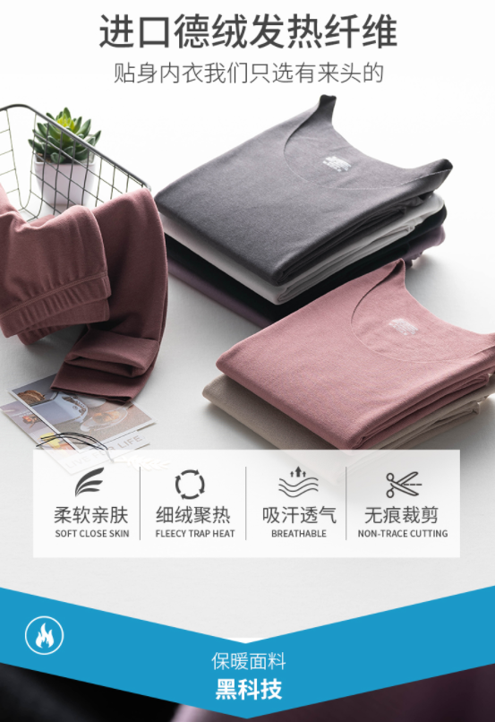 目前平台在售的德绒内衣套装面料纵横向弹力都很大,偏瘦体型按平常码选即可,喜欢宽松可拍大一码。套装含男女款,多色可选,部分尺码货量非常少。