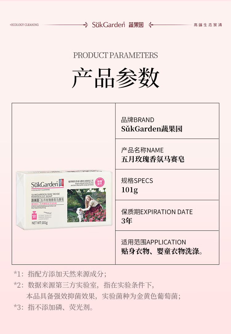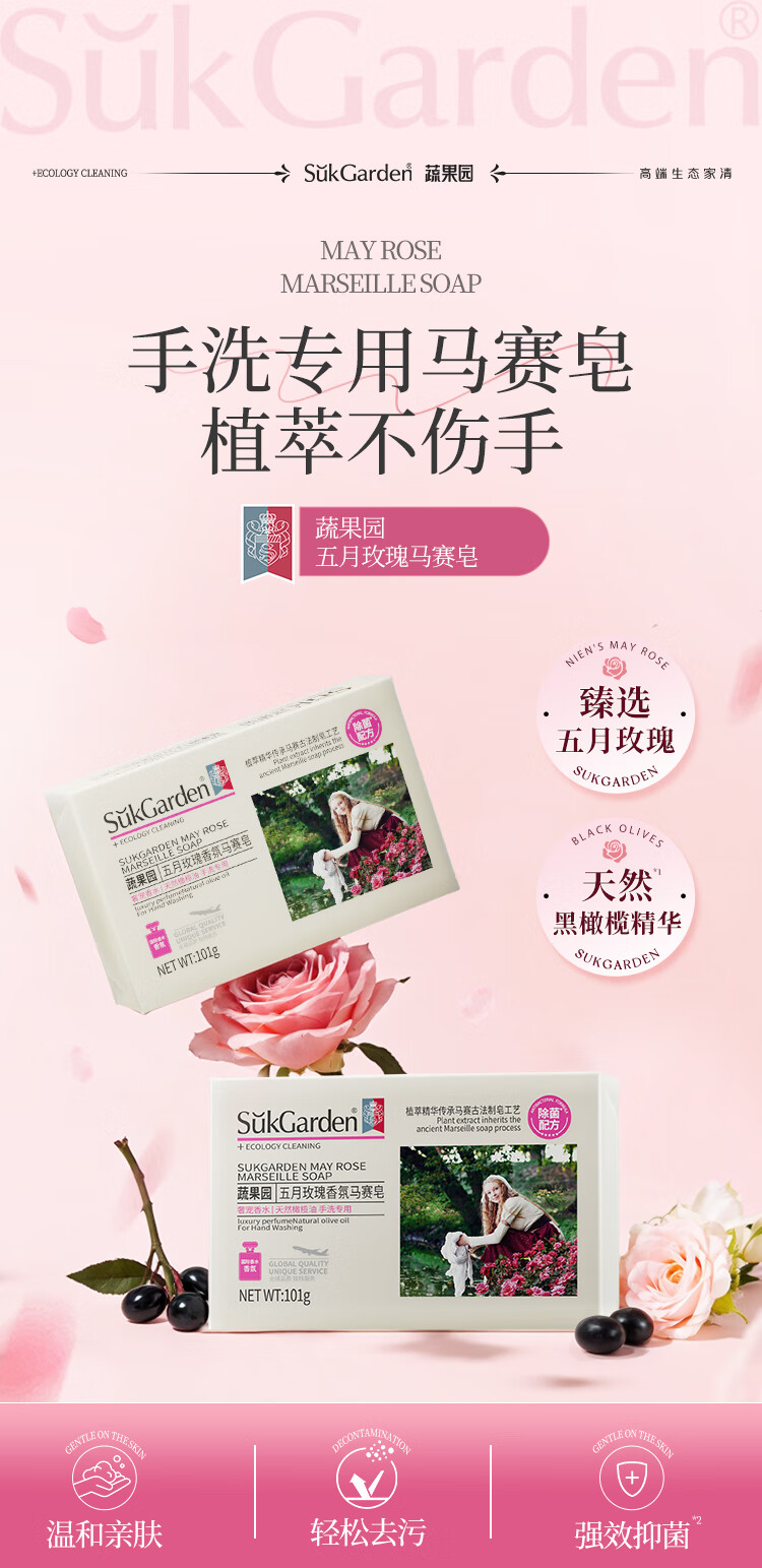 【分仓直发包邮】SukGarden蔬果园五月玫瑰香氛马赛皂101g*3块