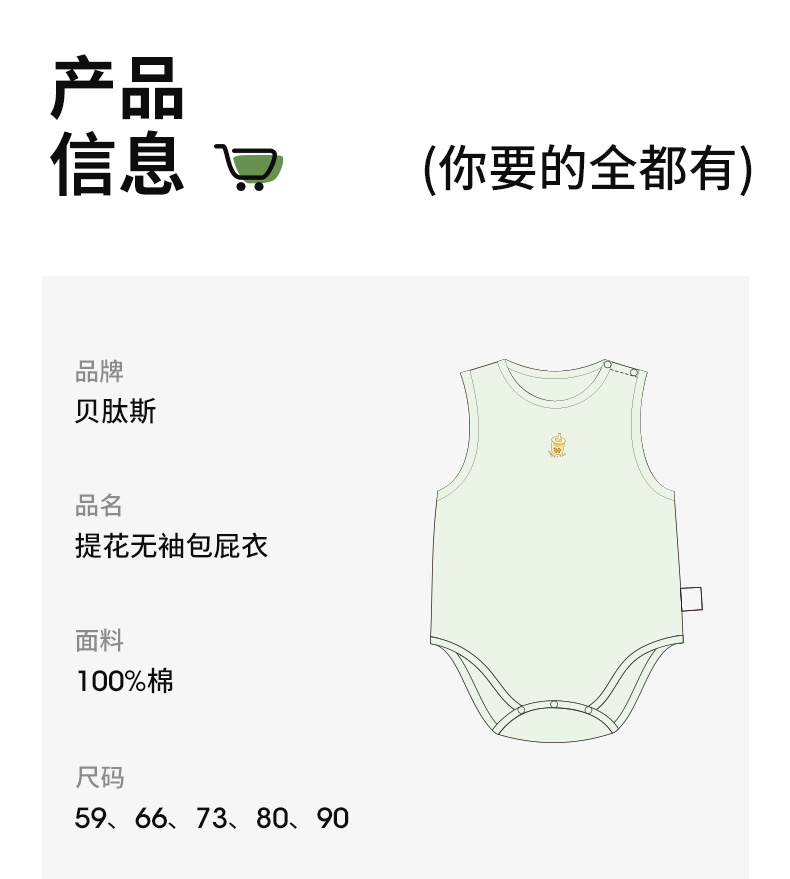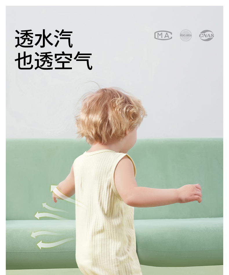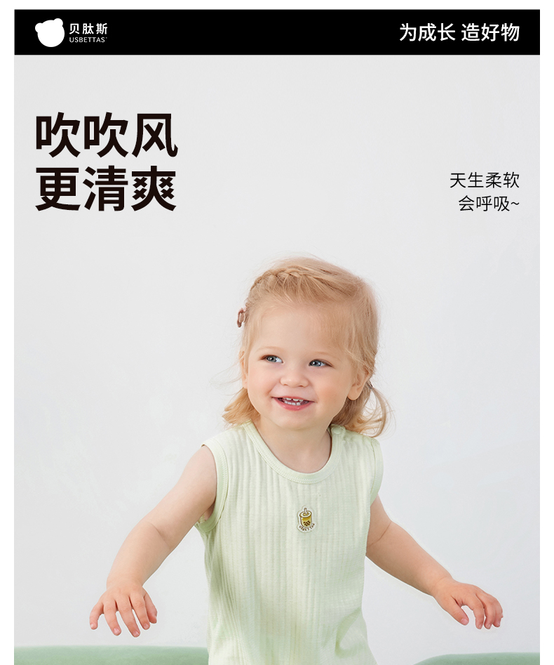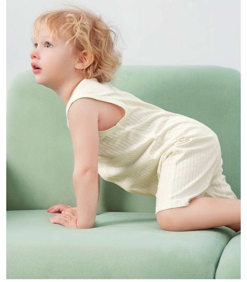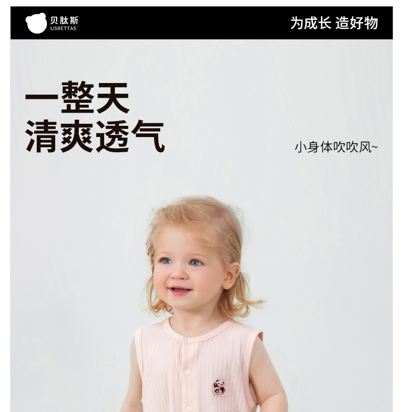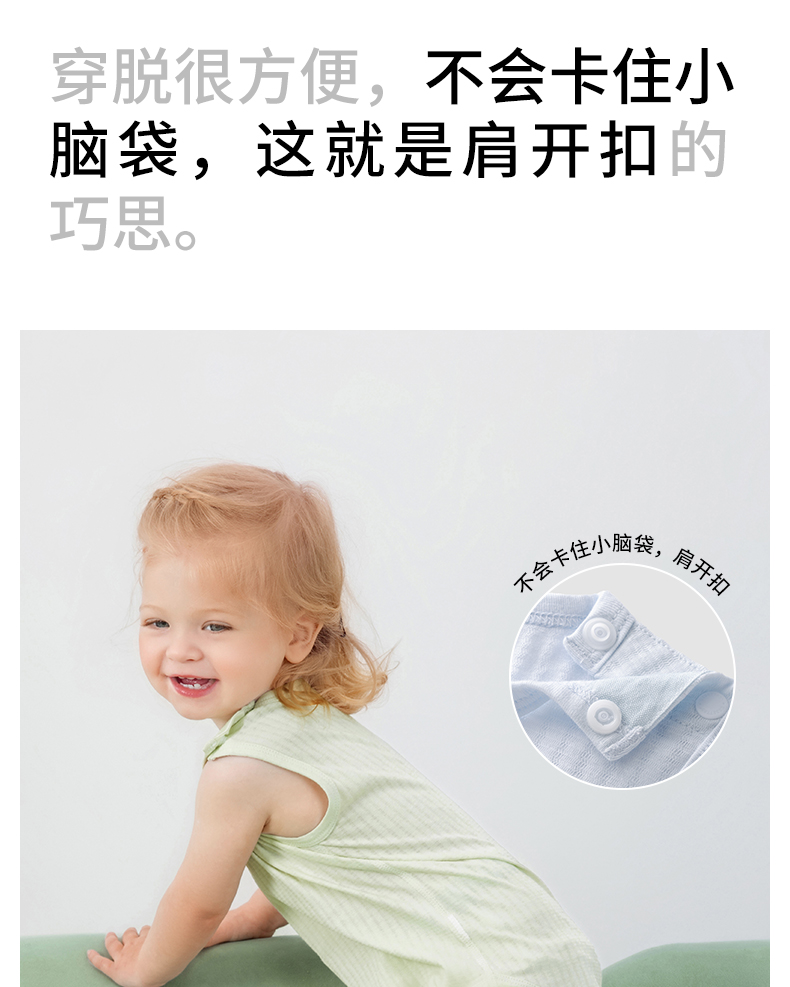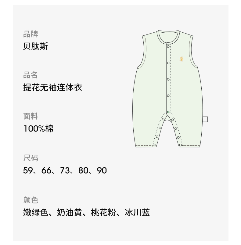 贝肽斯[自呼吸]婴儿衣服夏薄款背心包屁衣新生宝宝无袖连体衣纯棉