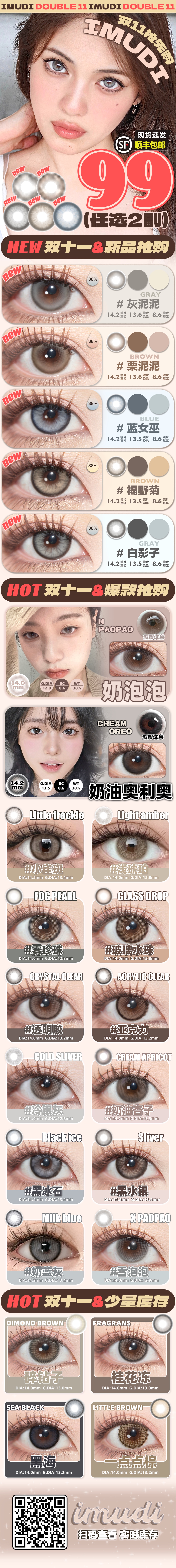 iMUDI年抛活动·99¥/2副·灰泥泥&栗泥泥&蓝女巫&褐野菊&白影子&黑冰石&黑水银&小雀斑&浅琥珀&雪泡泡&奶泡泡&雪梨冻&桂花冻&黑海&奶油奥利奥&奶油杏子&碎钻子&碎栗子&雾珍珠 等