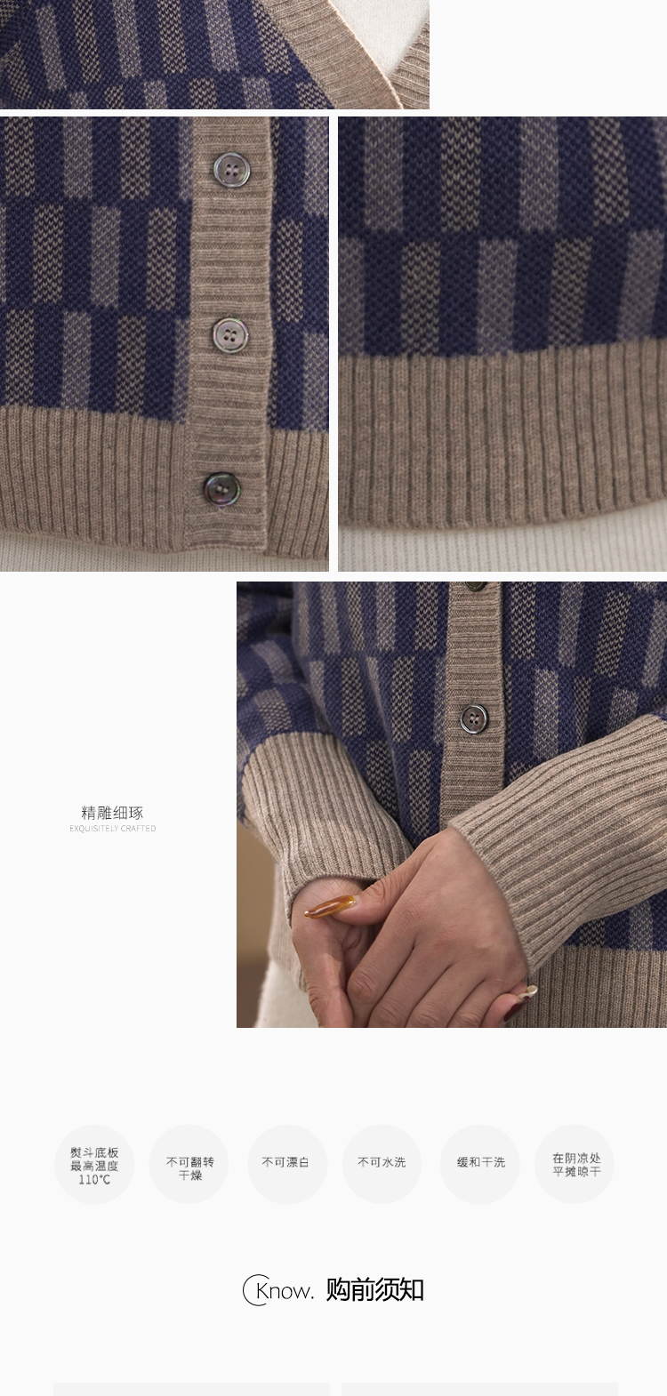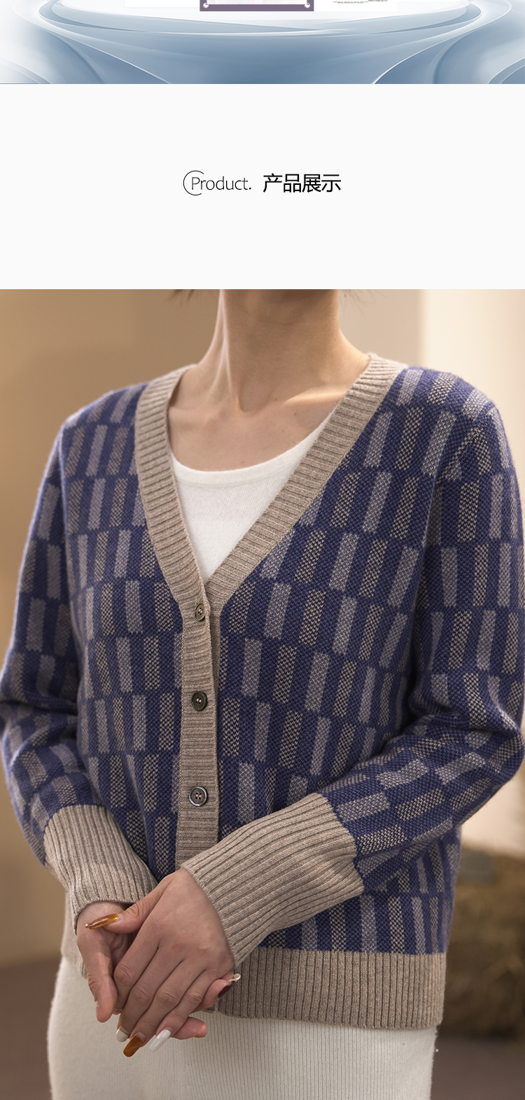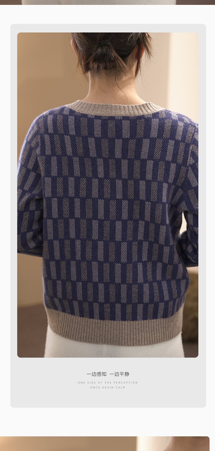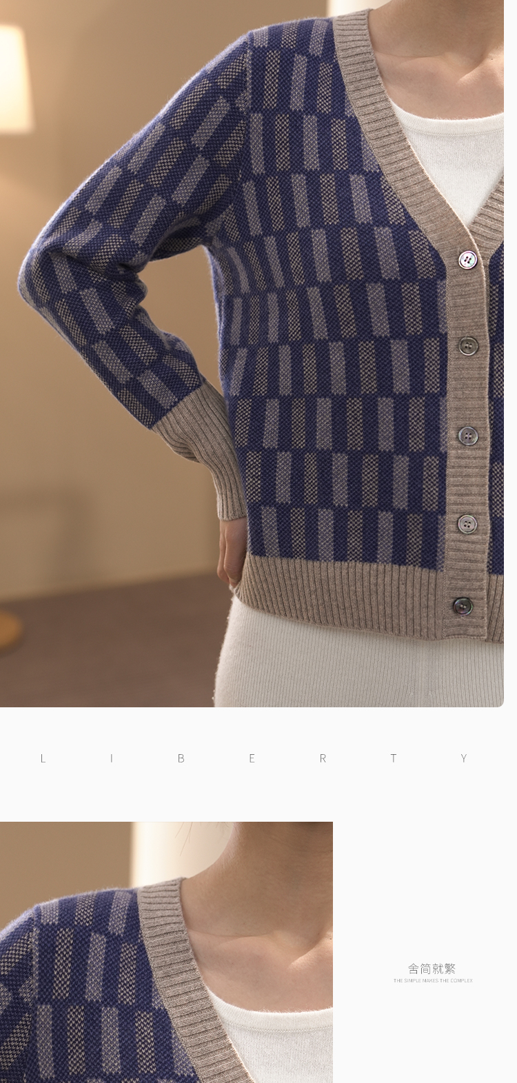 DONGLI&张继成联名款 山羊绒 女士秋冬针织V领开衫复古拼色提花220498
