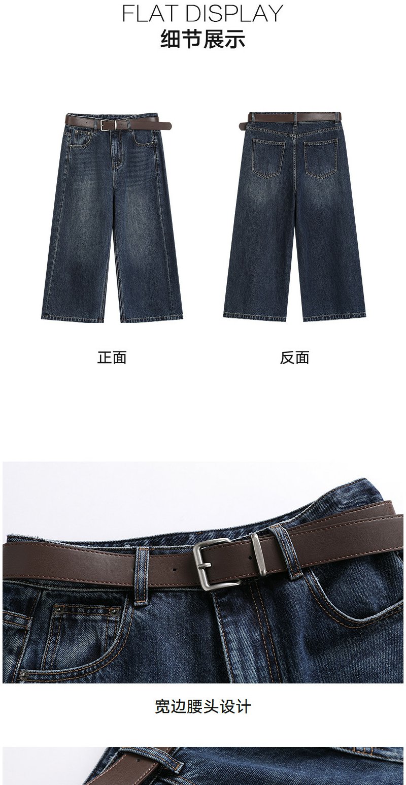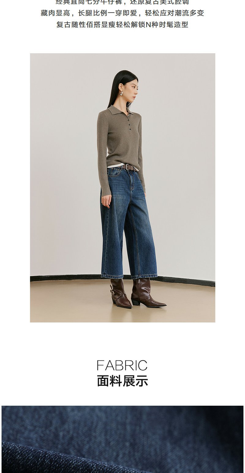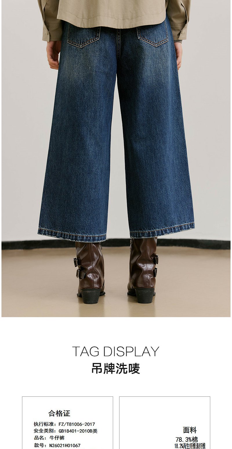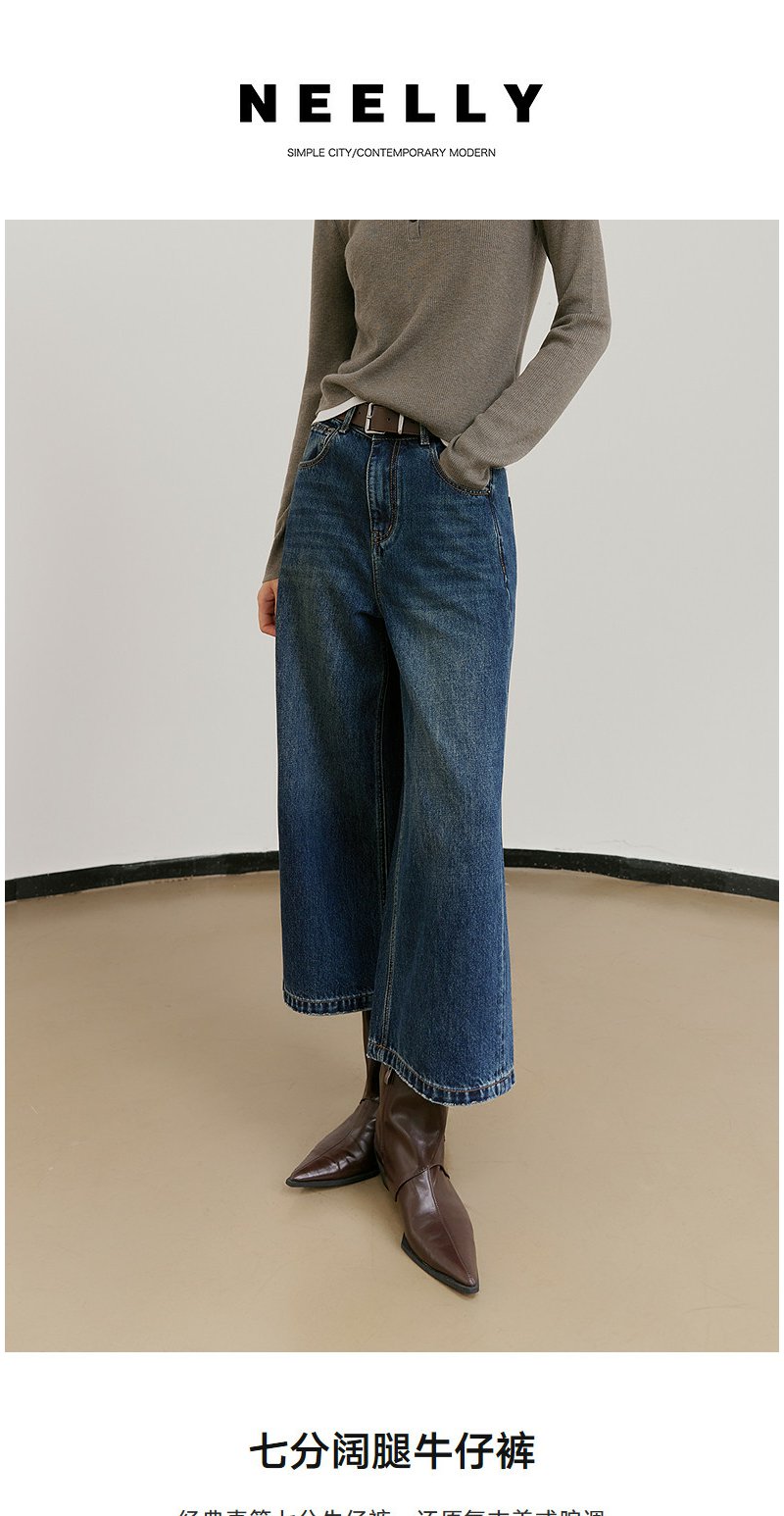 NEELLY纳俪商场同款春季新款复古随性阔腿七分裤女美式酷飒直筒裤N26021H01067