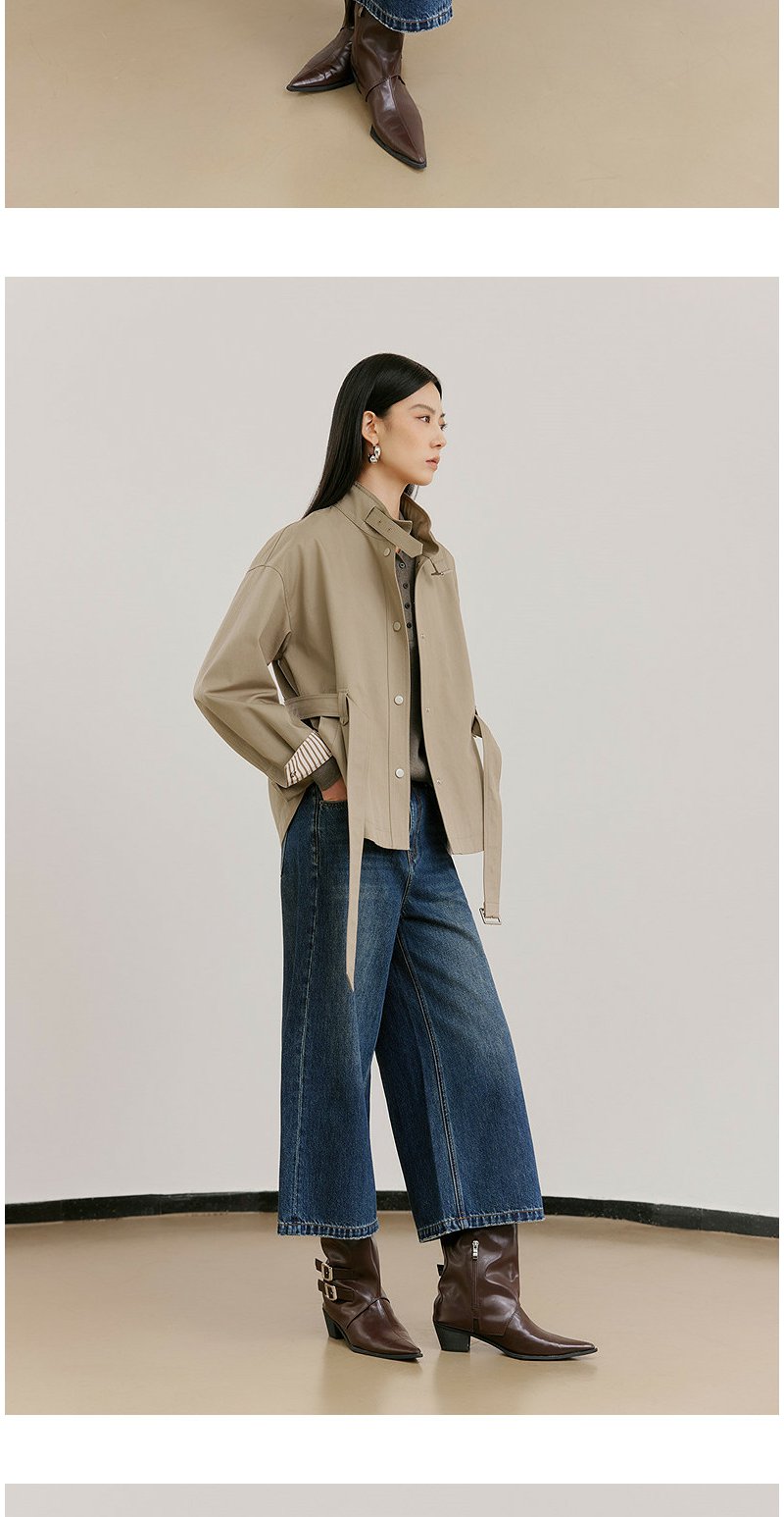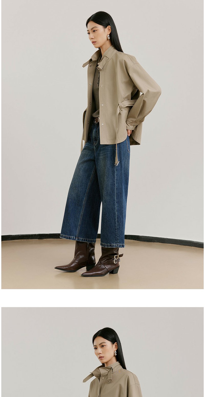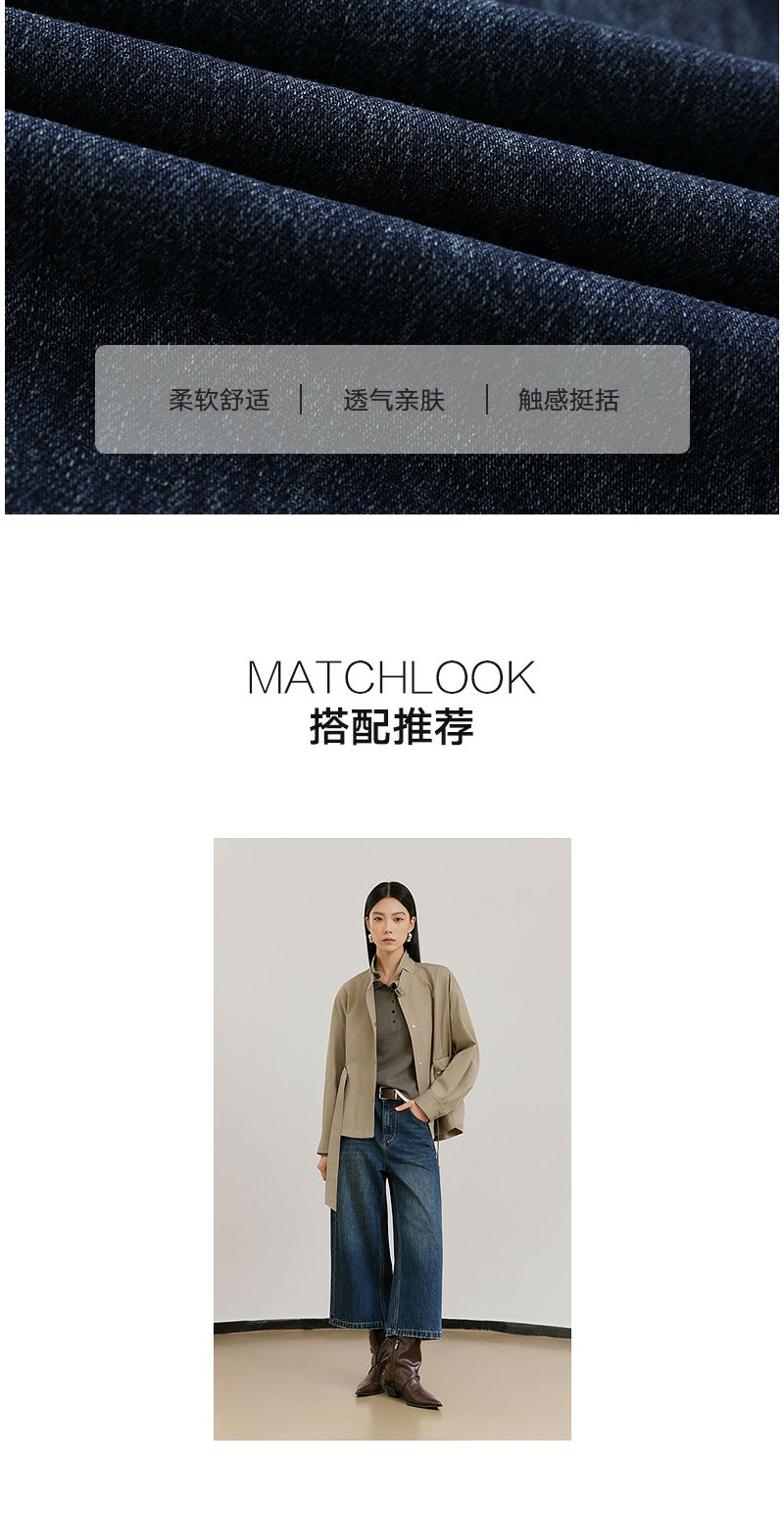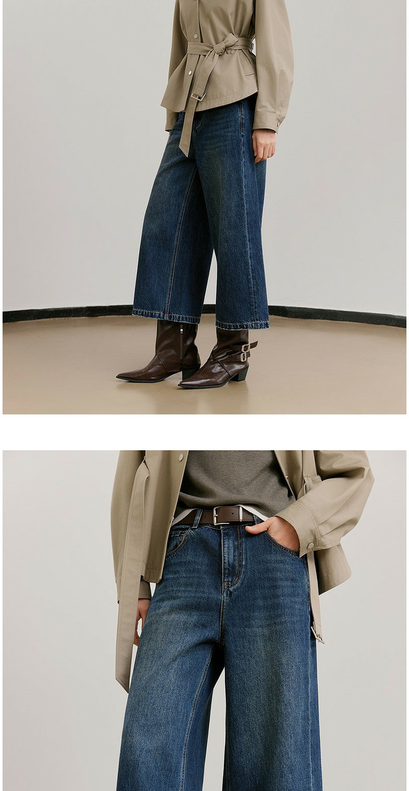 NEELLY纳俪商场同款春季新款复古随性阔腿七分裤女美式酷飒直筒裤N26021H01067