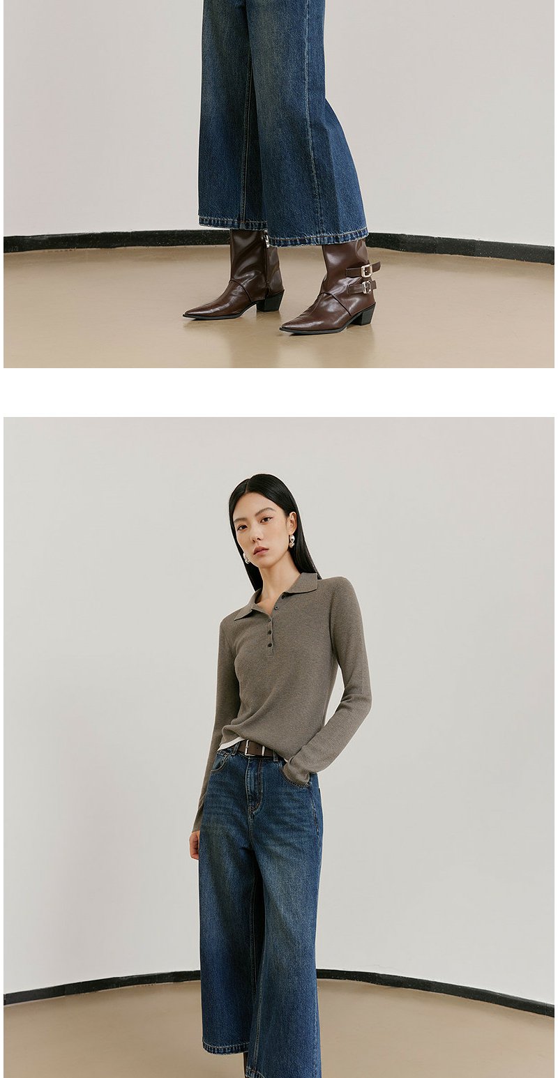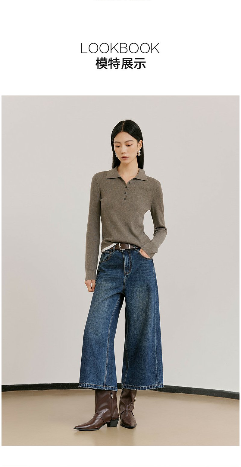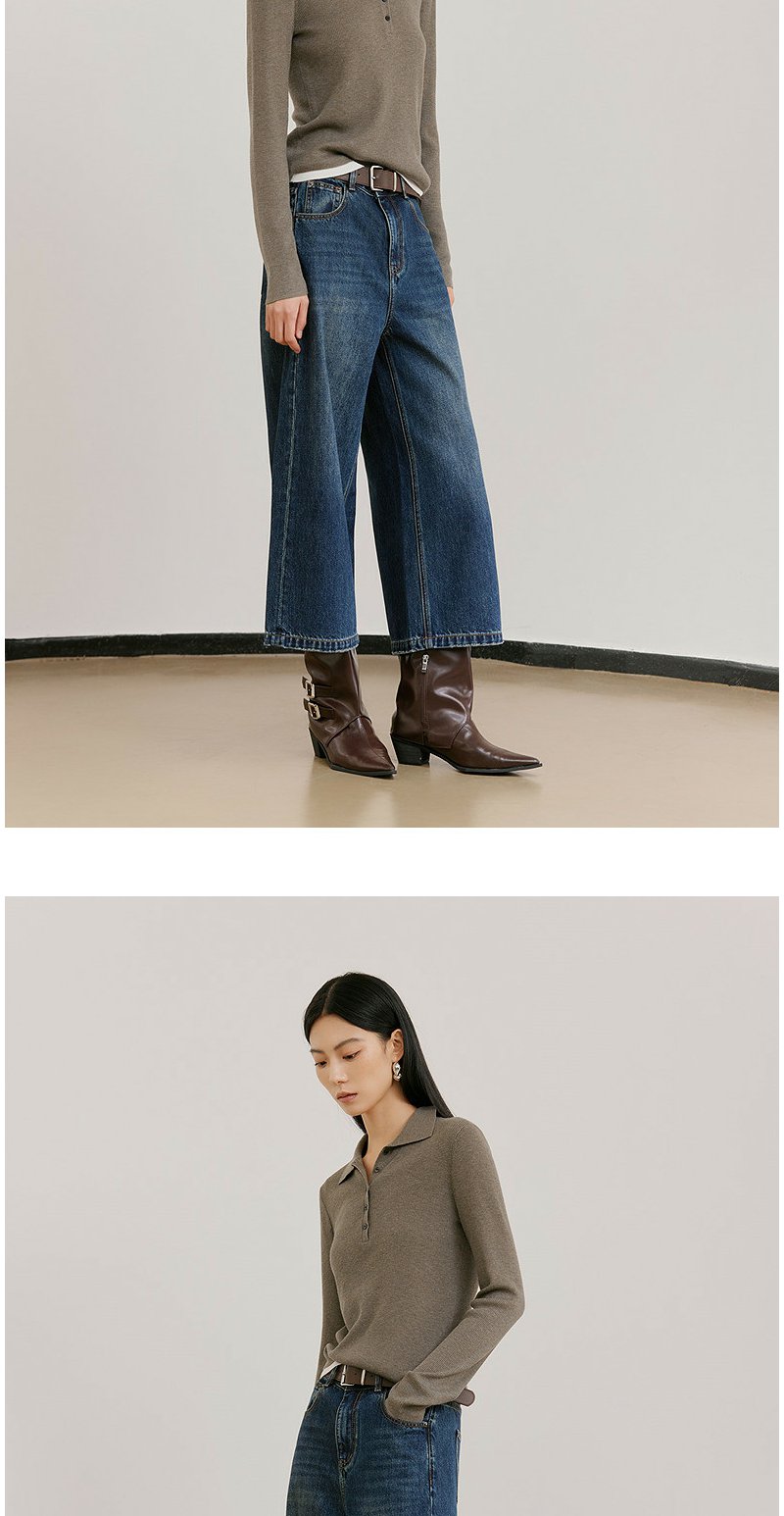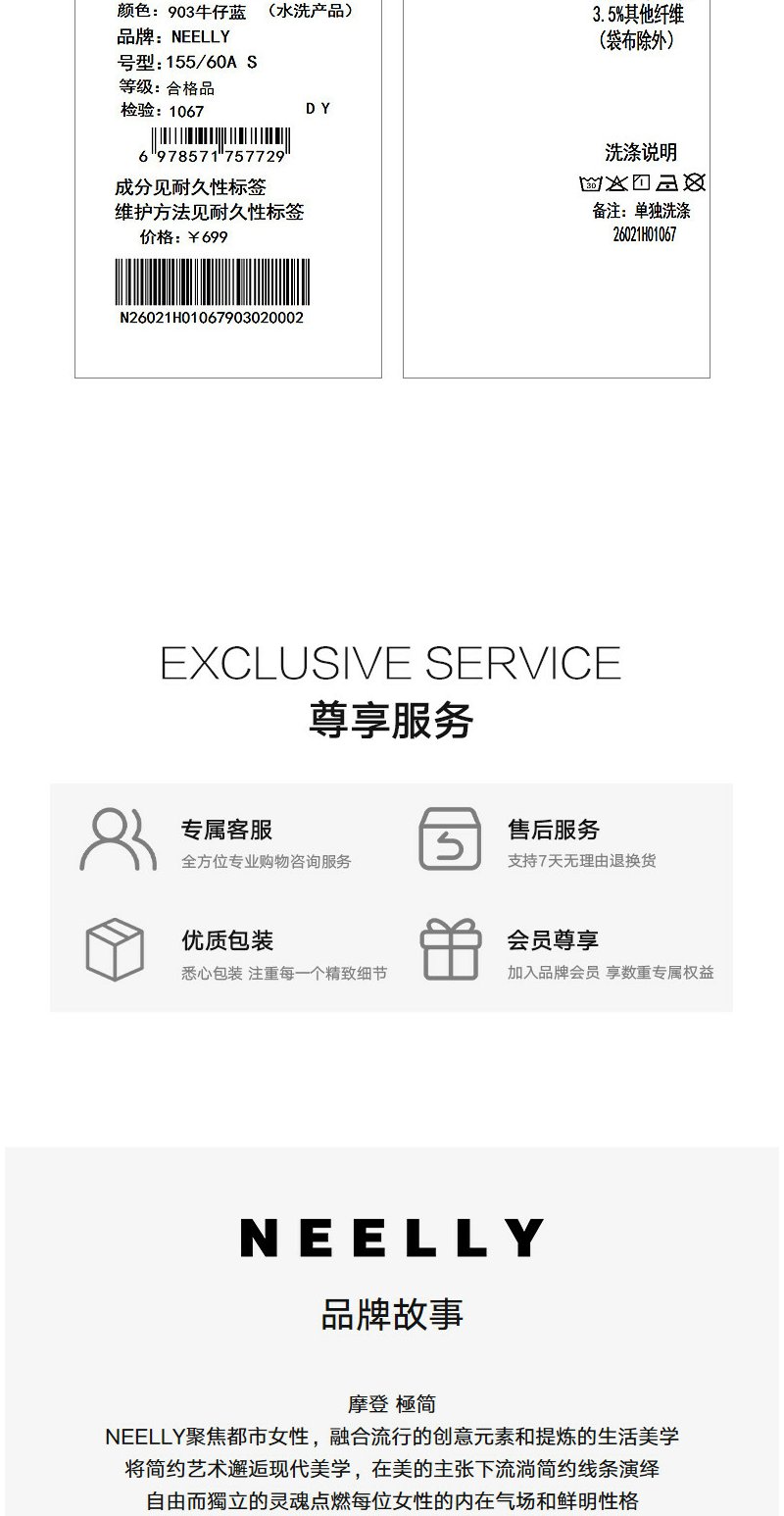 NEELLY纳俪商场同款春季新款复古随性阔腿七分裤女美式酷飒直筒裤N26021H01067