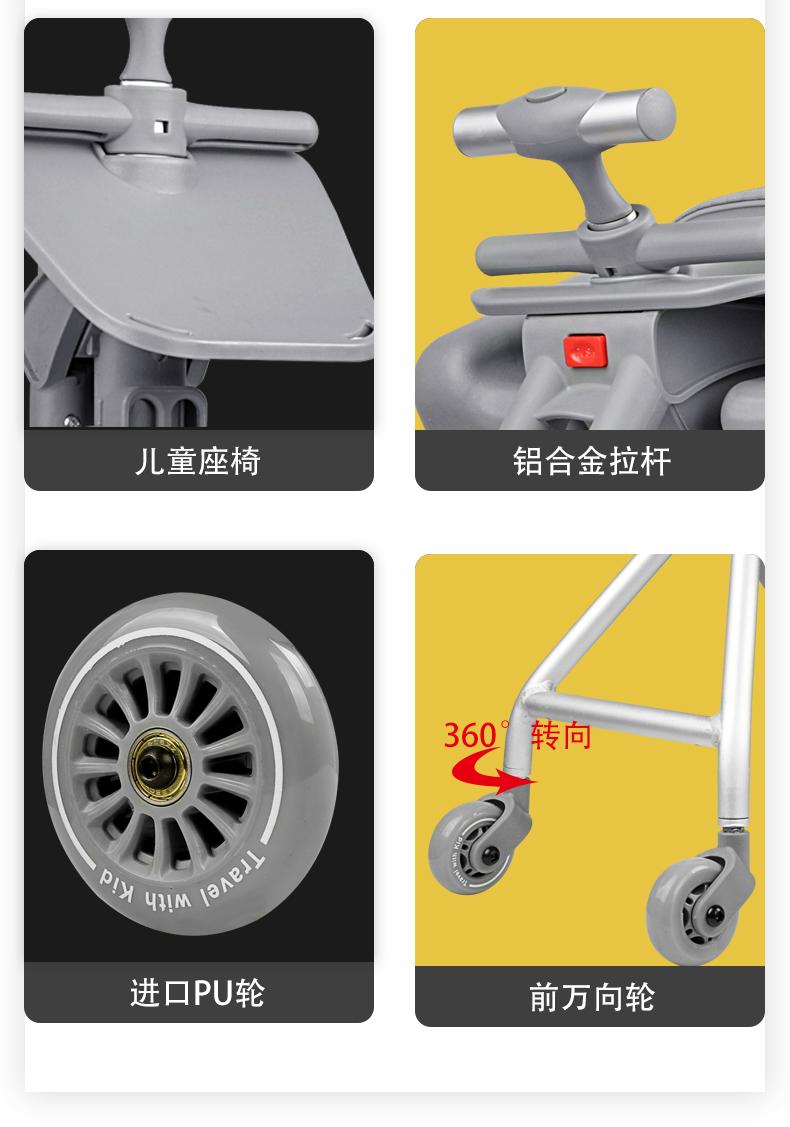 QBOX儿童行李箱可坐骑懒人拉杆出行神器宝宝密码箱卡通扩容刹车小 XHR