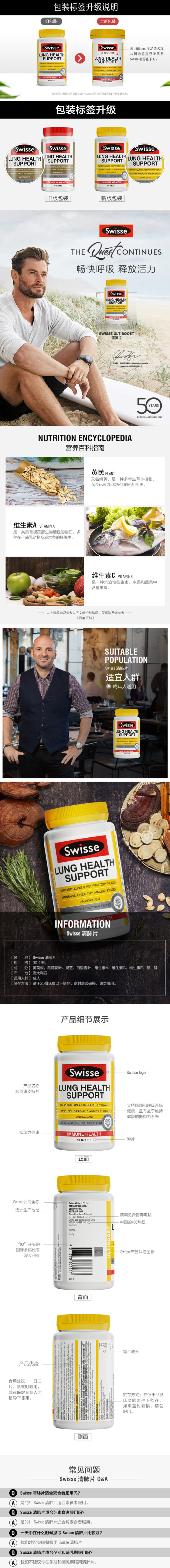 澳洲Swisse斯维诗肺动能片90粒草本复合维生素清肺片养肺
