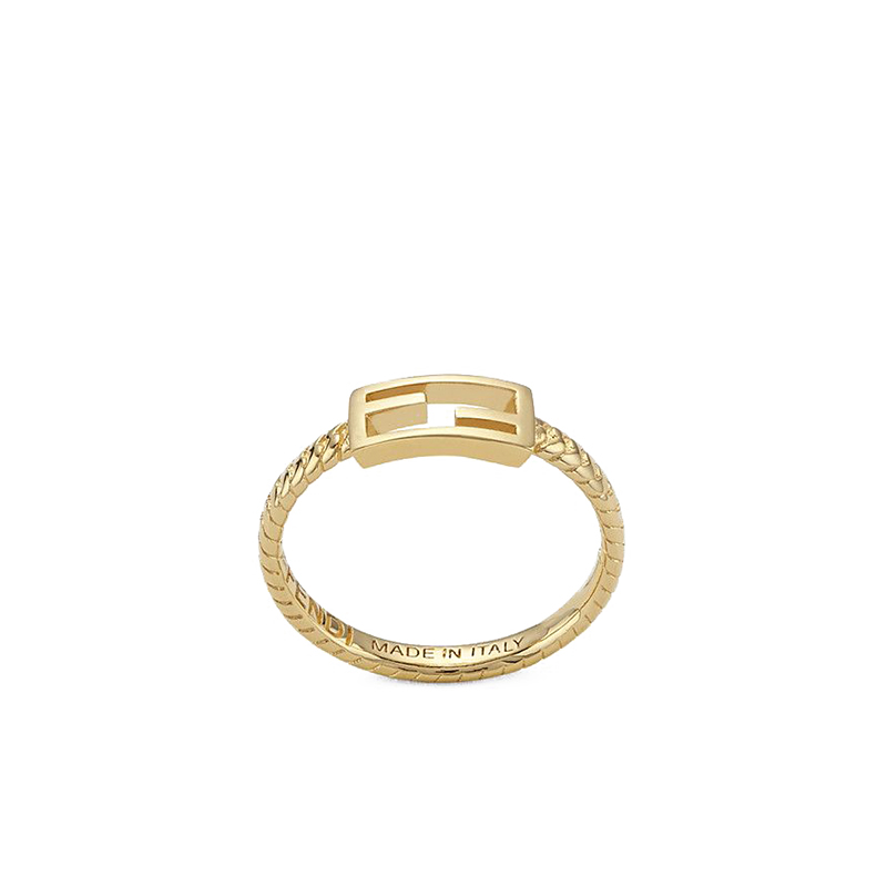 戒指饰有网状链和FF Baguette图案。由金属制成,具有金色涂层。