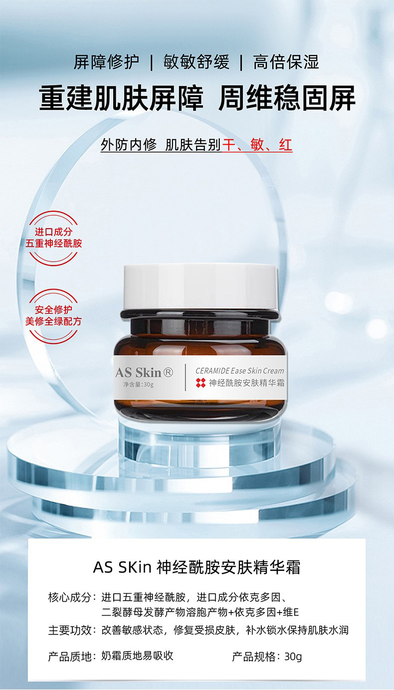 AS Skin 神经酰胺安肤精华霜30g 保湿晒后修护