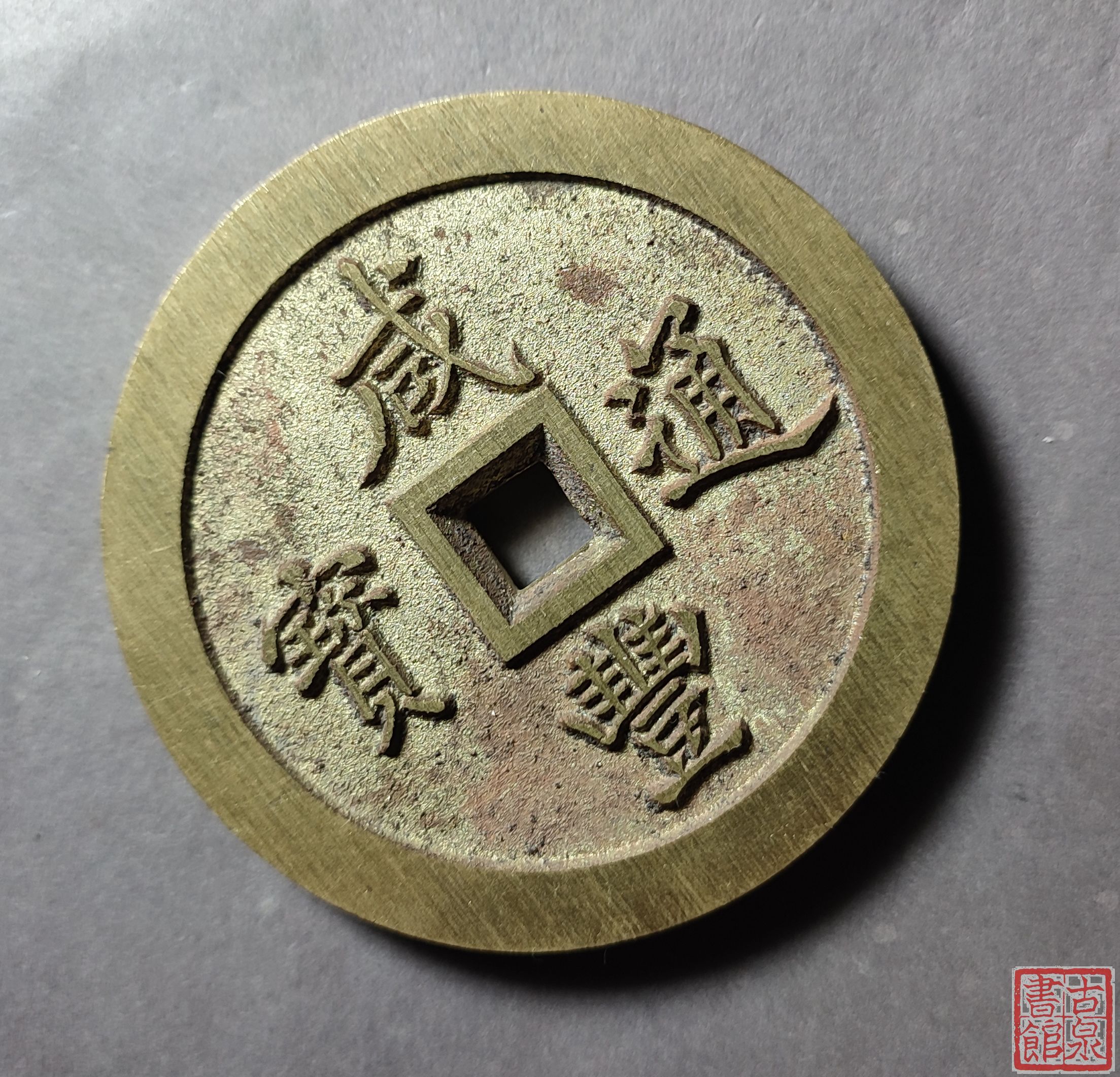 为了尽量还原古代钱币的文字神韵与时代铸造特征,每一枚都进行手工修刀、打磨。会有打磨痕迹、刻刀痕迹,铸造气孔或者微小沙眼,这正是手工与机器制作的区别,并非瑕疵。