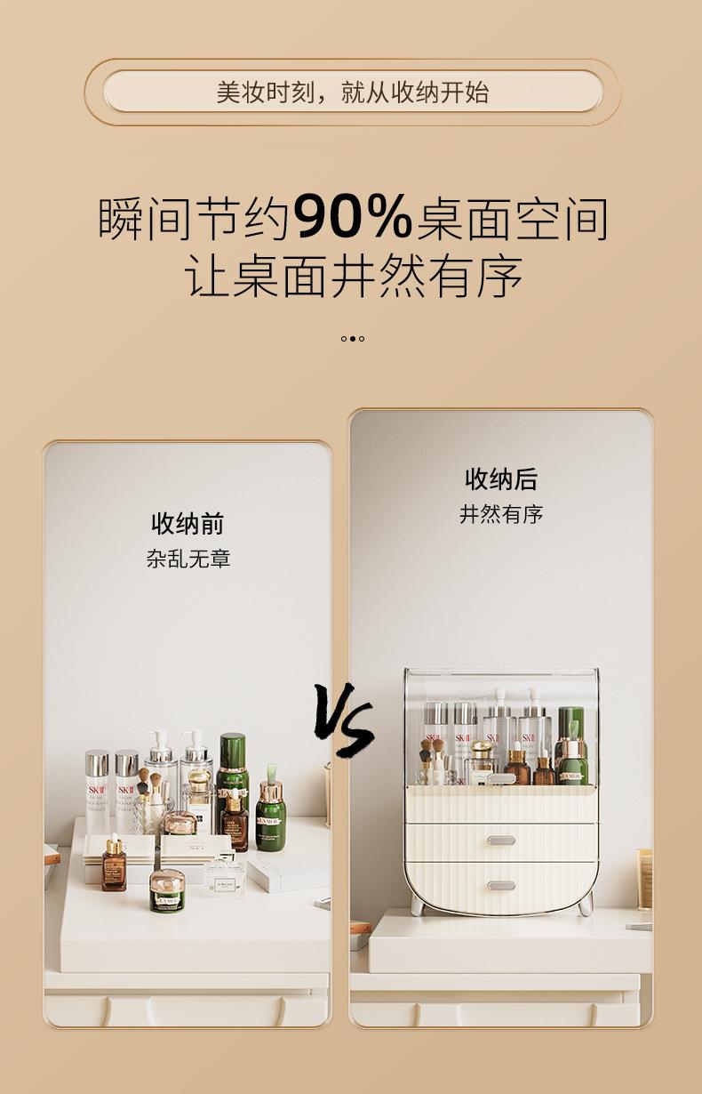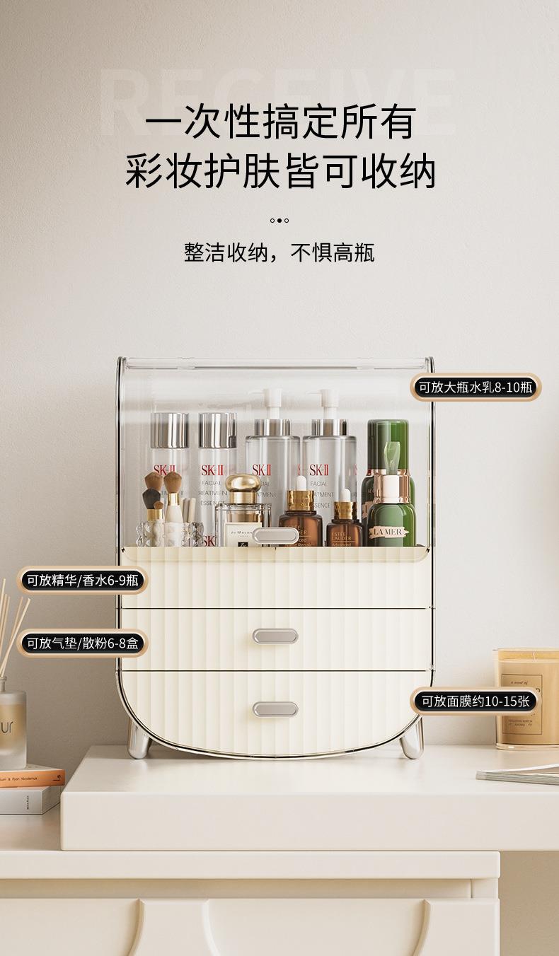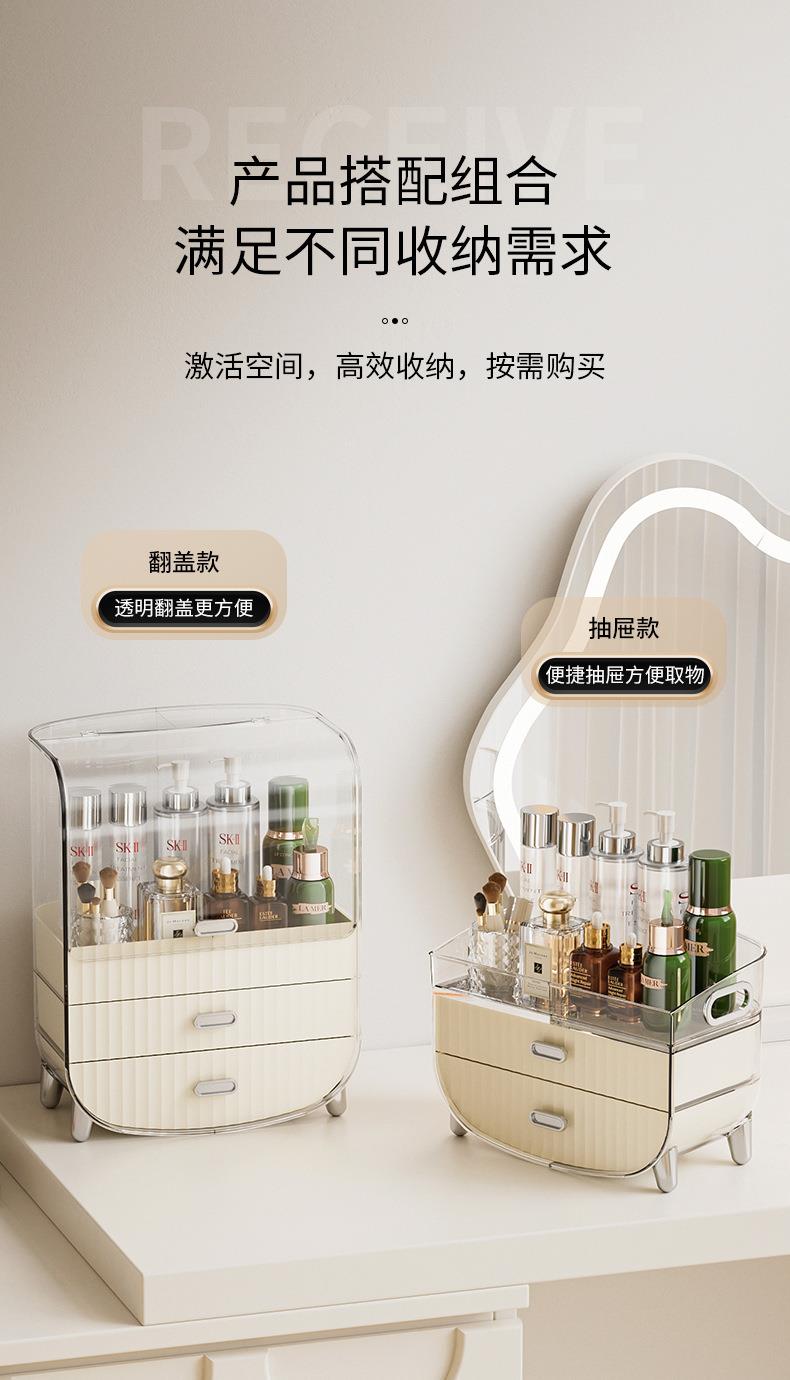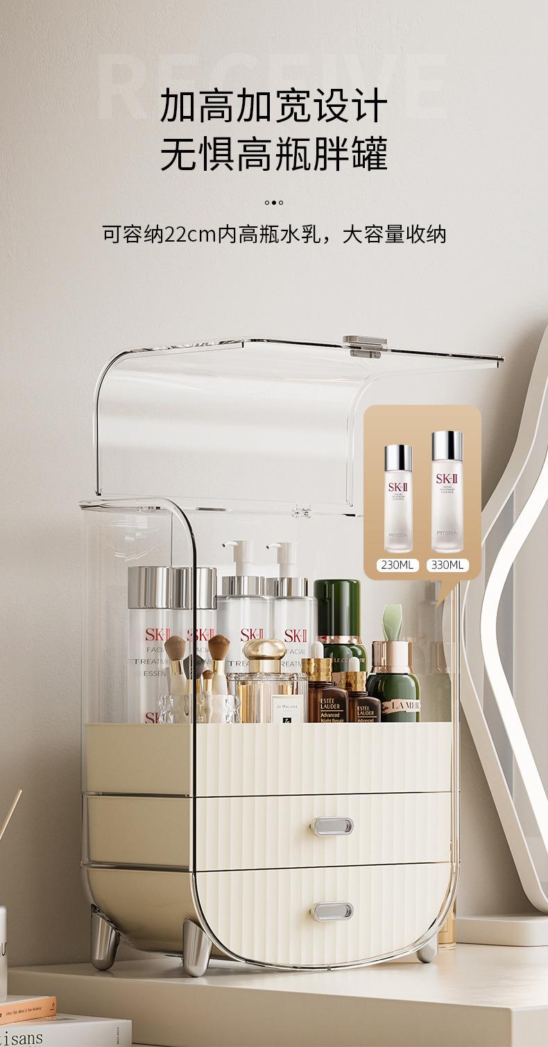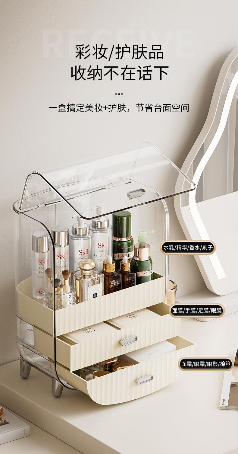 奶油风化妆品收纳盒透明防尘翻盖高级感桌面多层护肤品收纳置物架