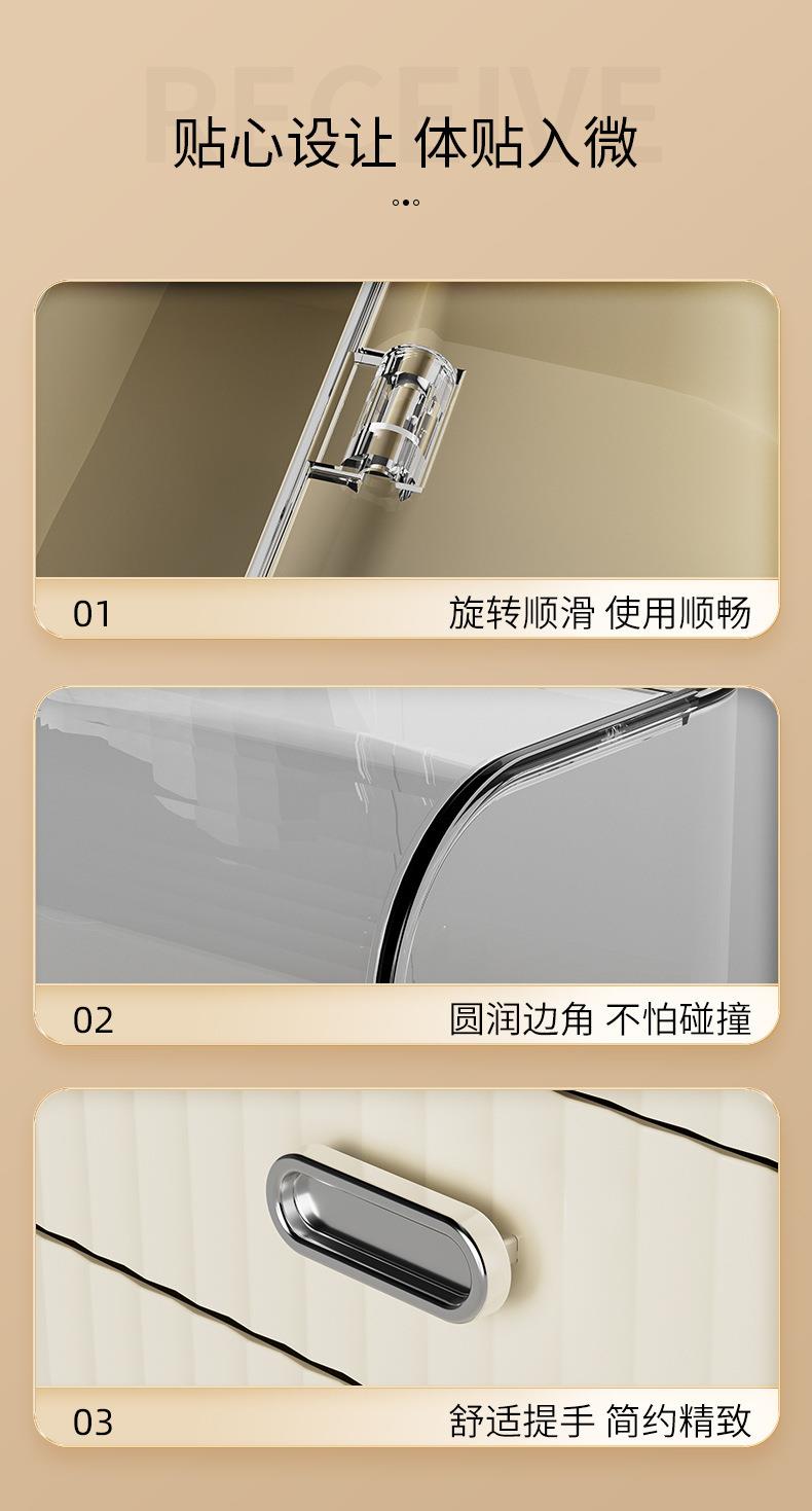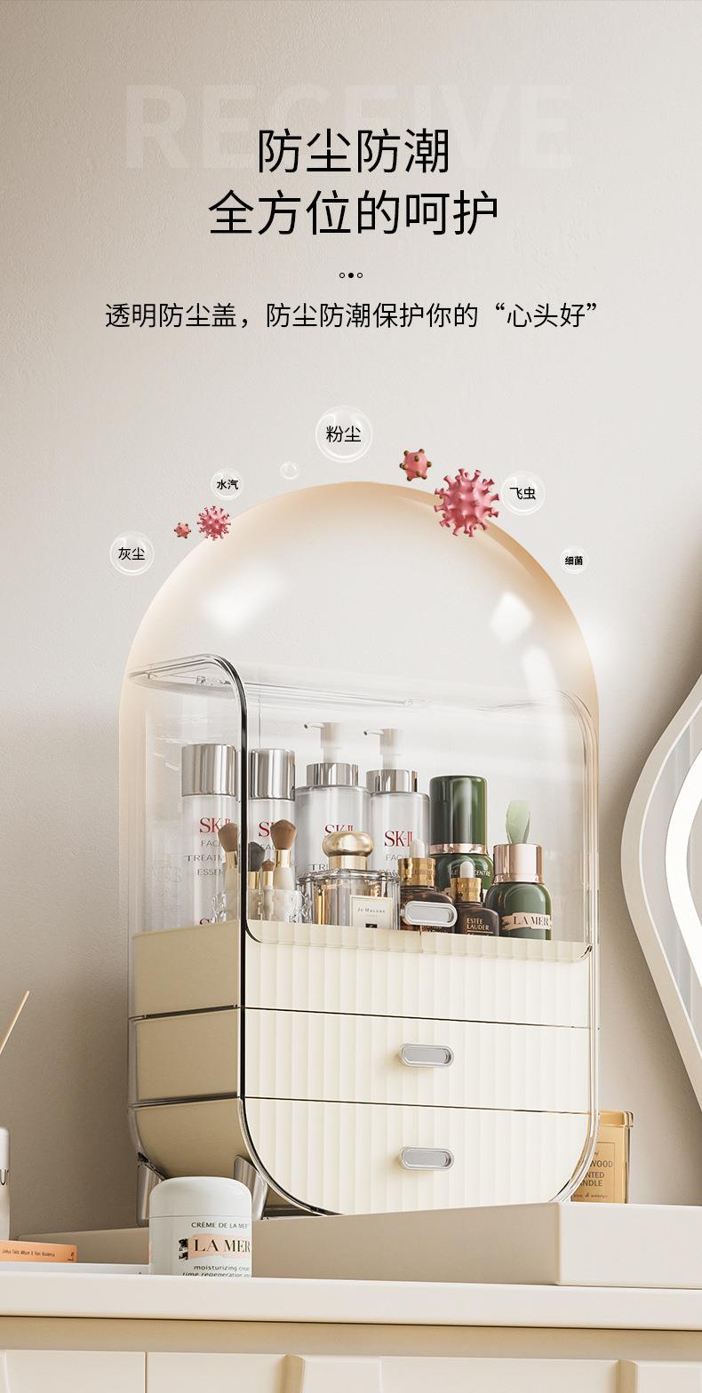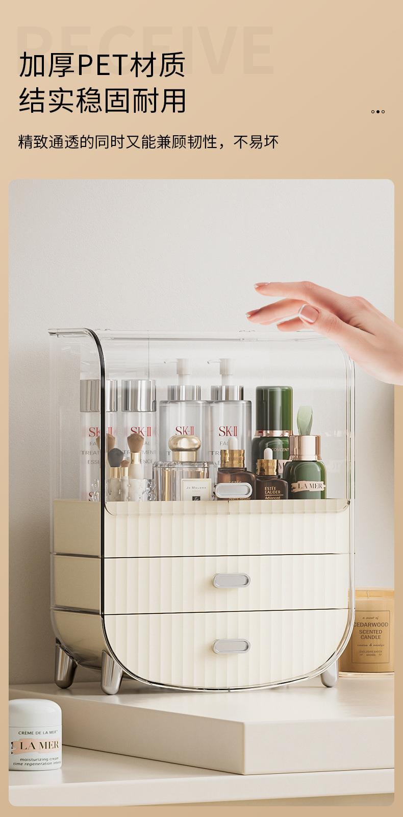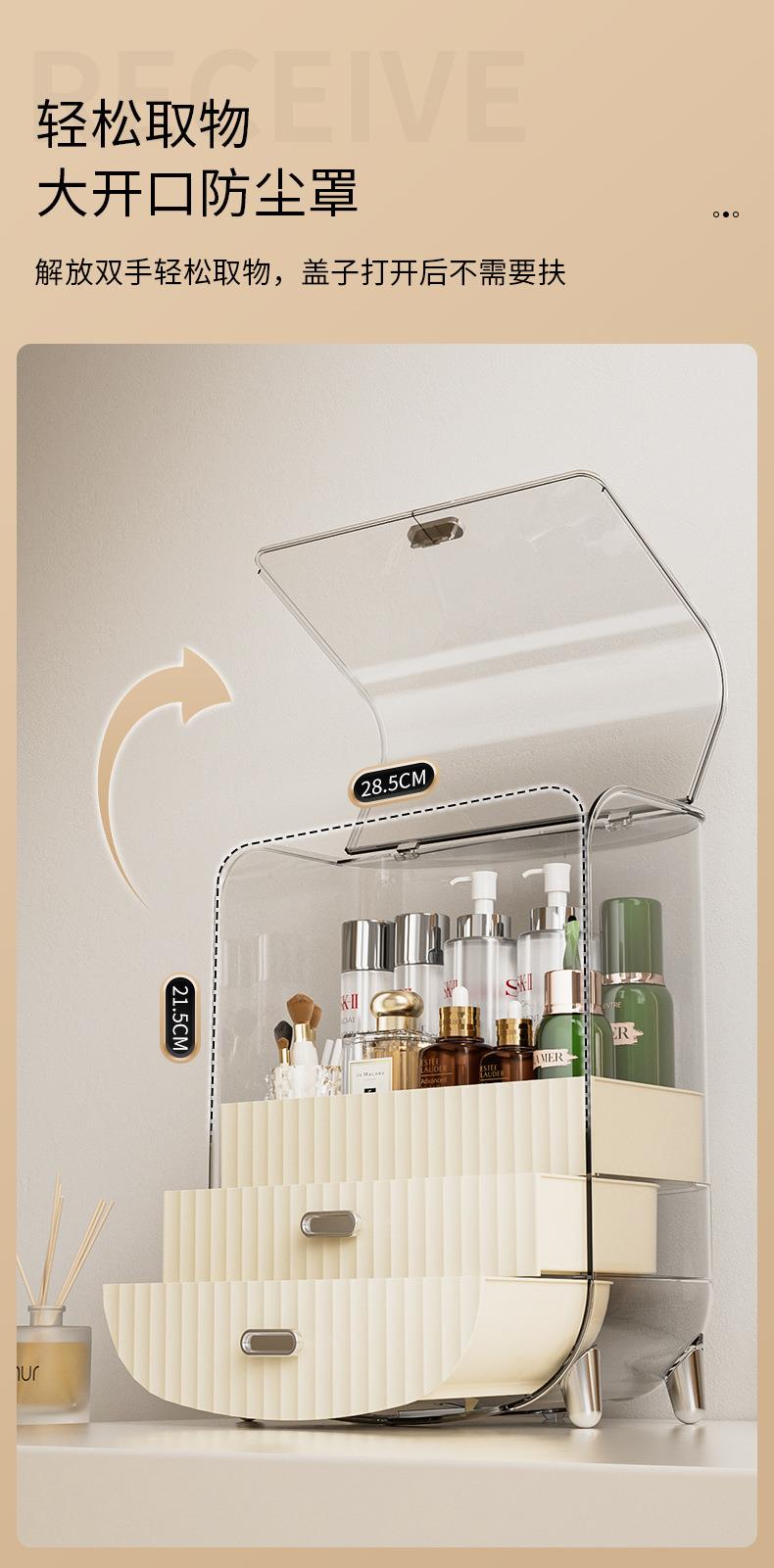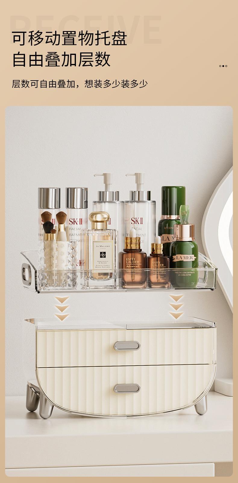 奶油风化妆品收纳盒透明防尘翻盖高级感桌面多层护肤品收纳置物架