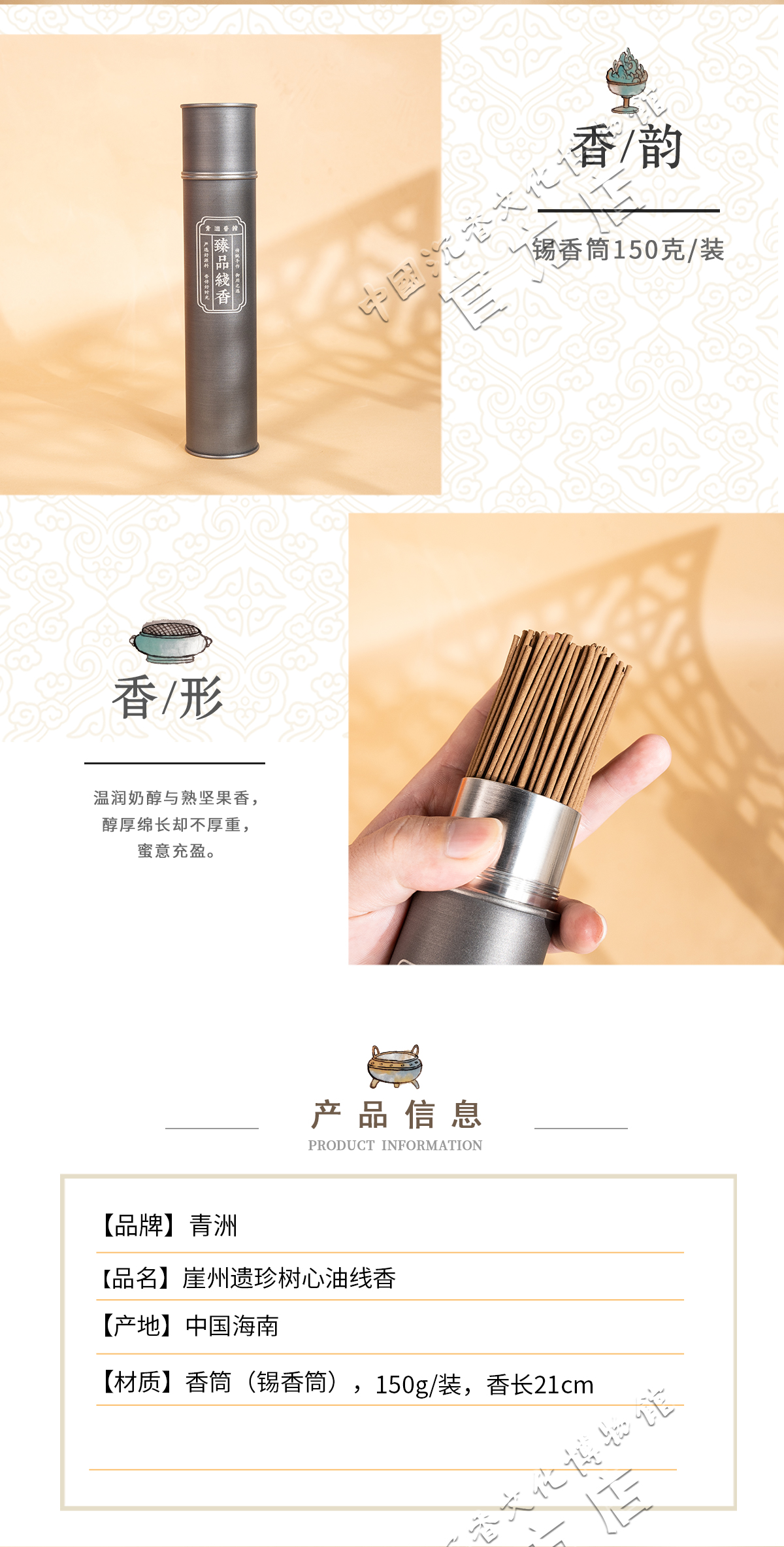 中国沉香文化博物馆 崖州遗珍树心油线香 150g