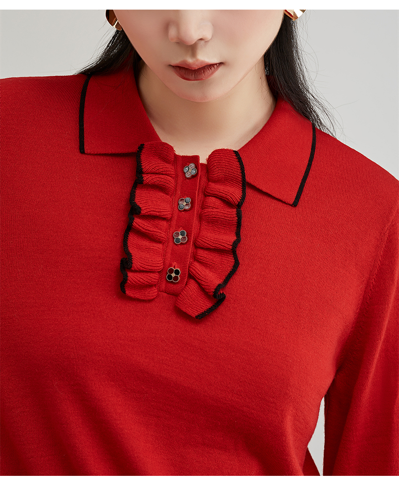 【淘衣节专享】阿菁娜秋季新款圆领钉珠通勤气质针织衫F29Q301003