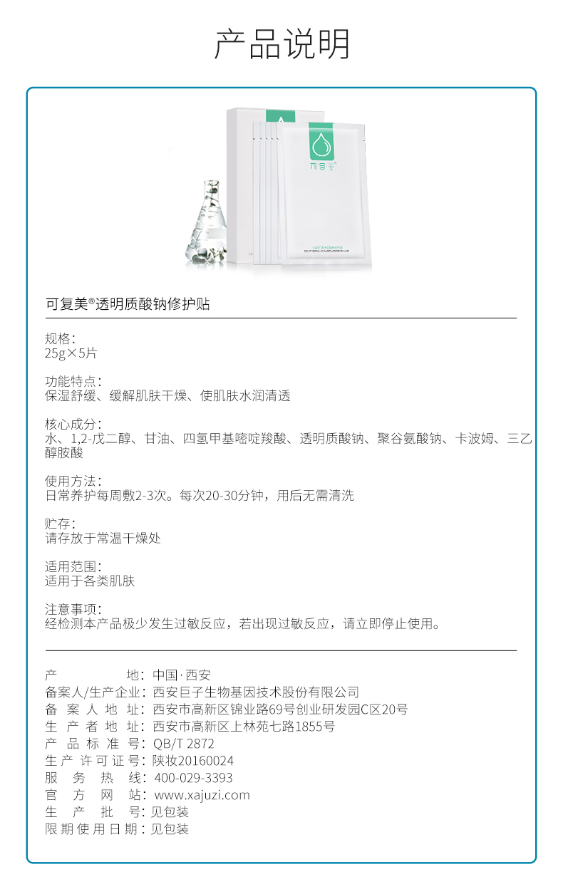 可复美透明质酸钠修护贴(小水膜) 5片盒