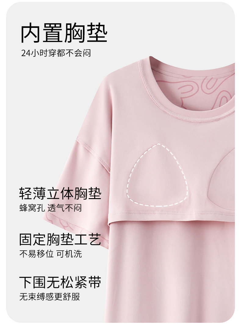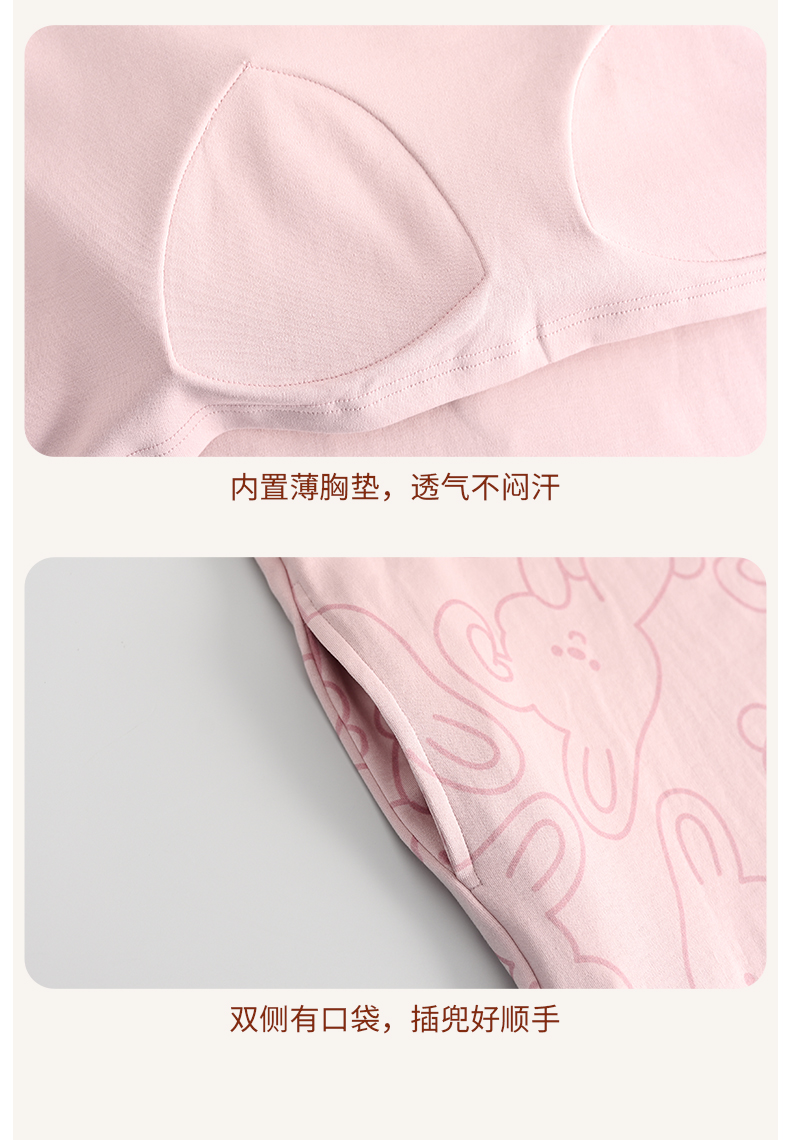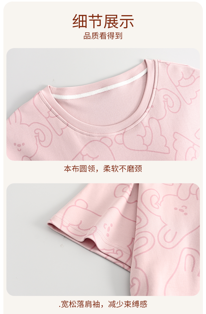 (合作款)芬腾【带胸垫】防凸点新款女士纯棉短袖长裤家居服套装yc0209009