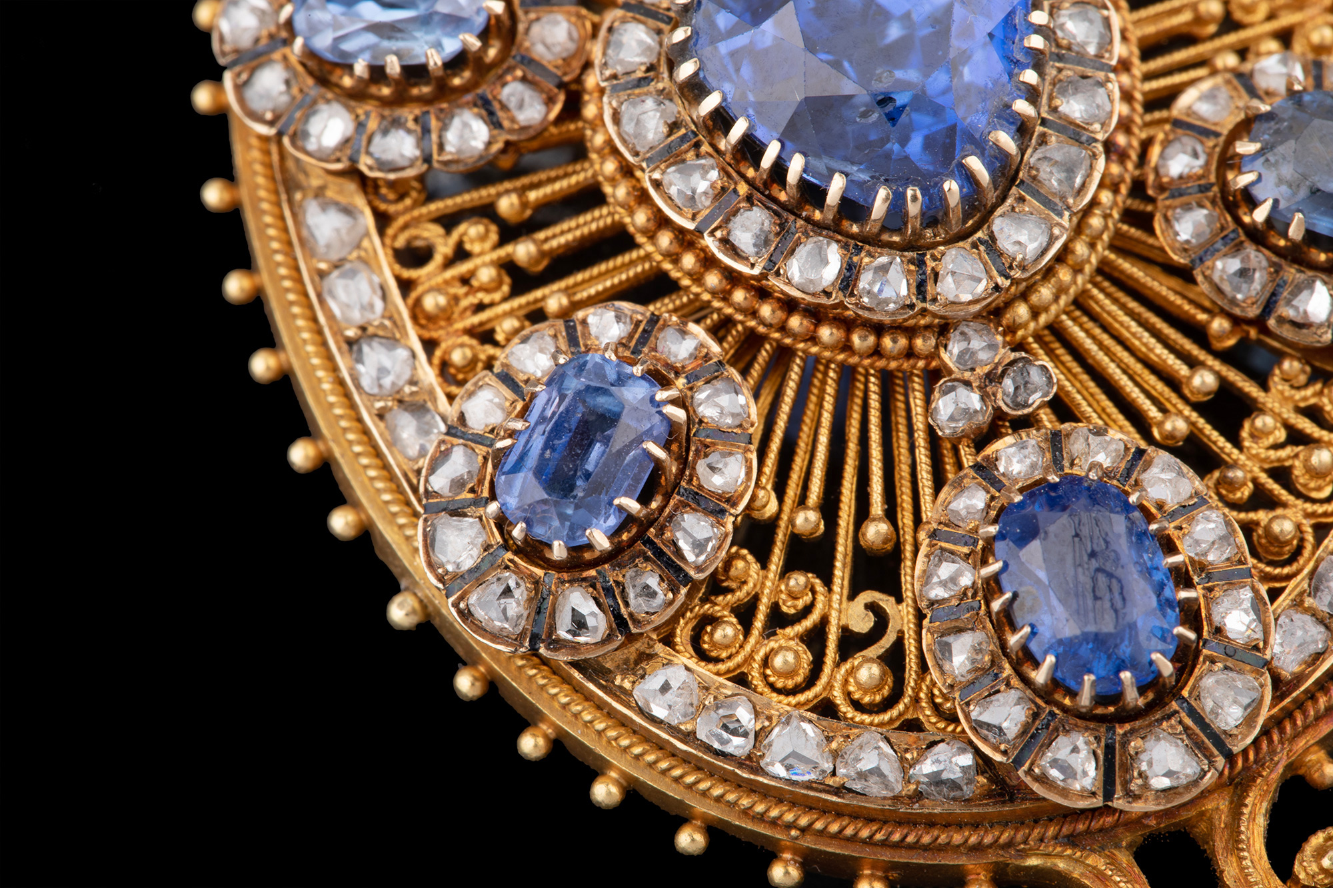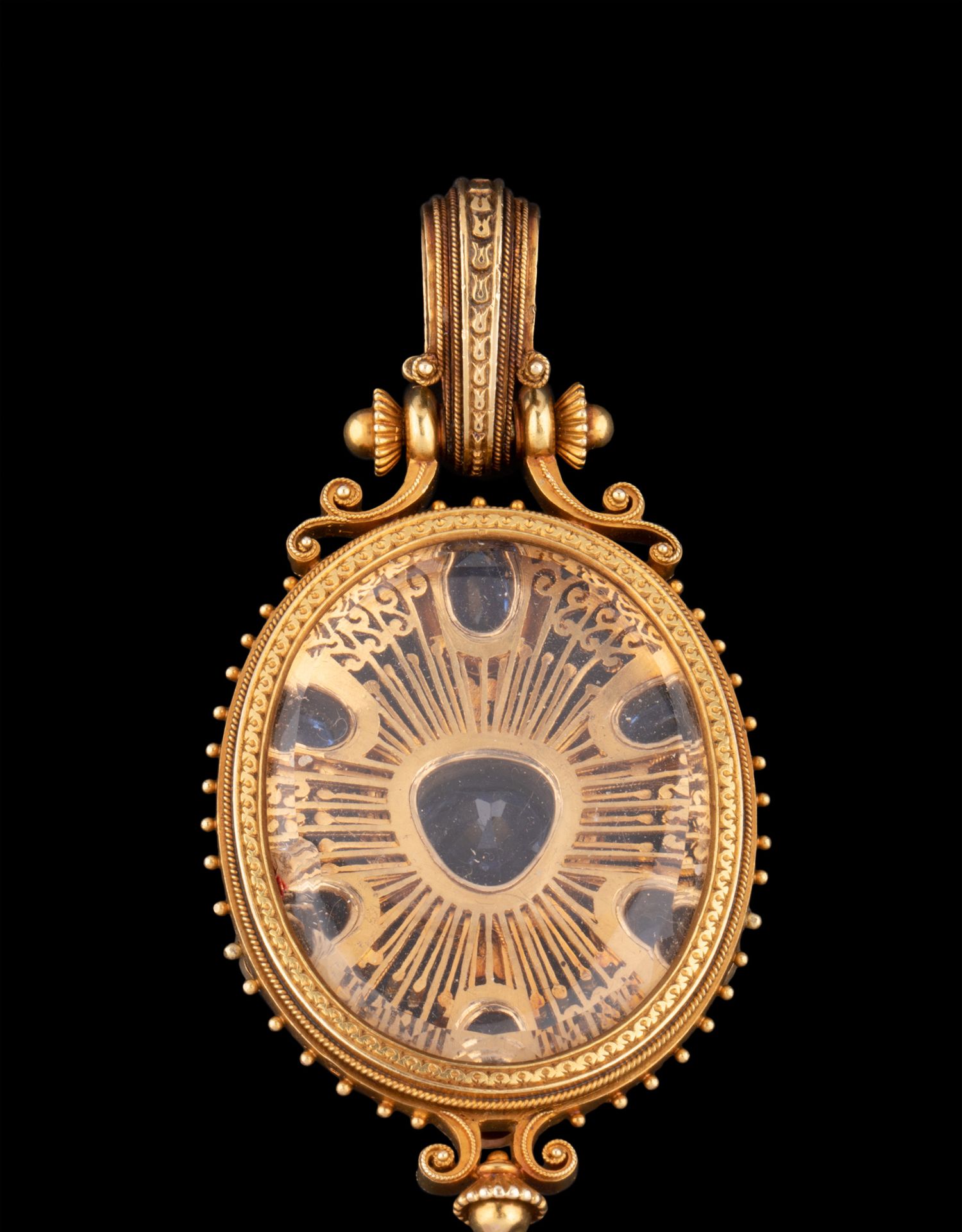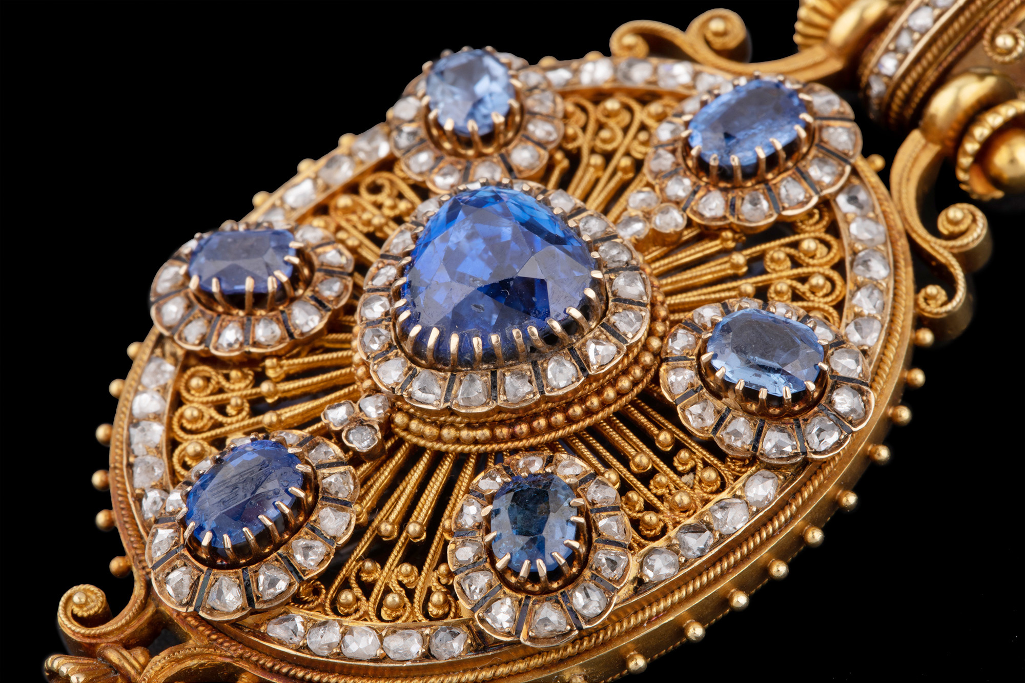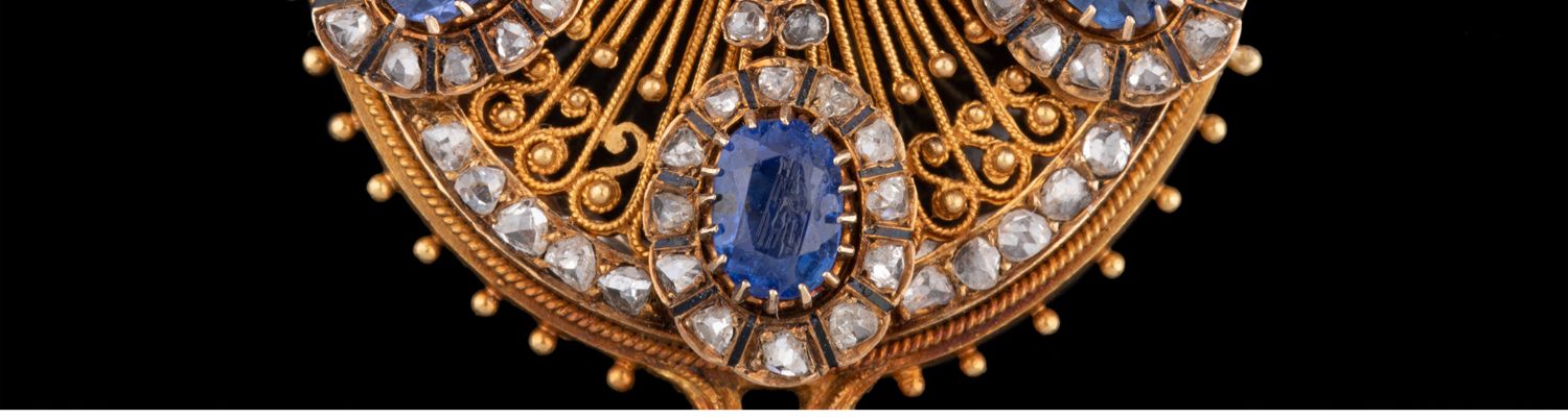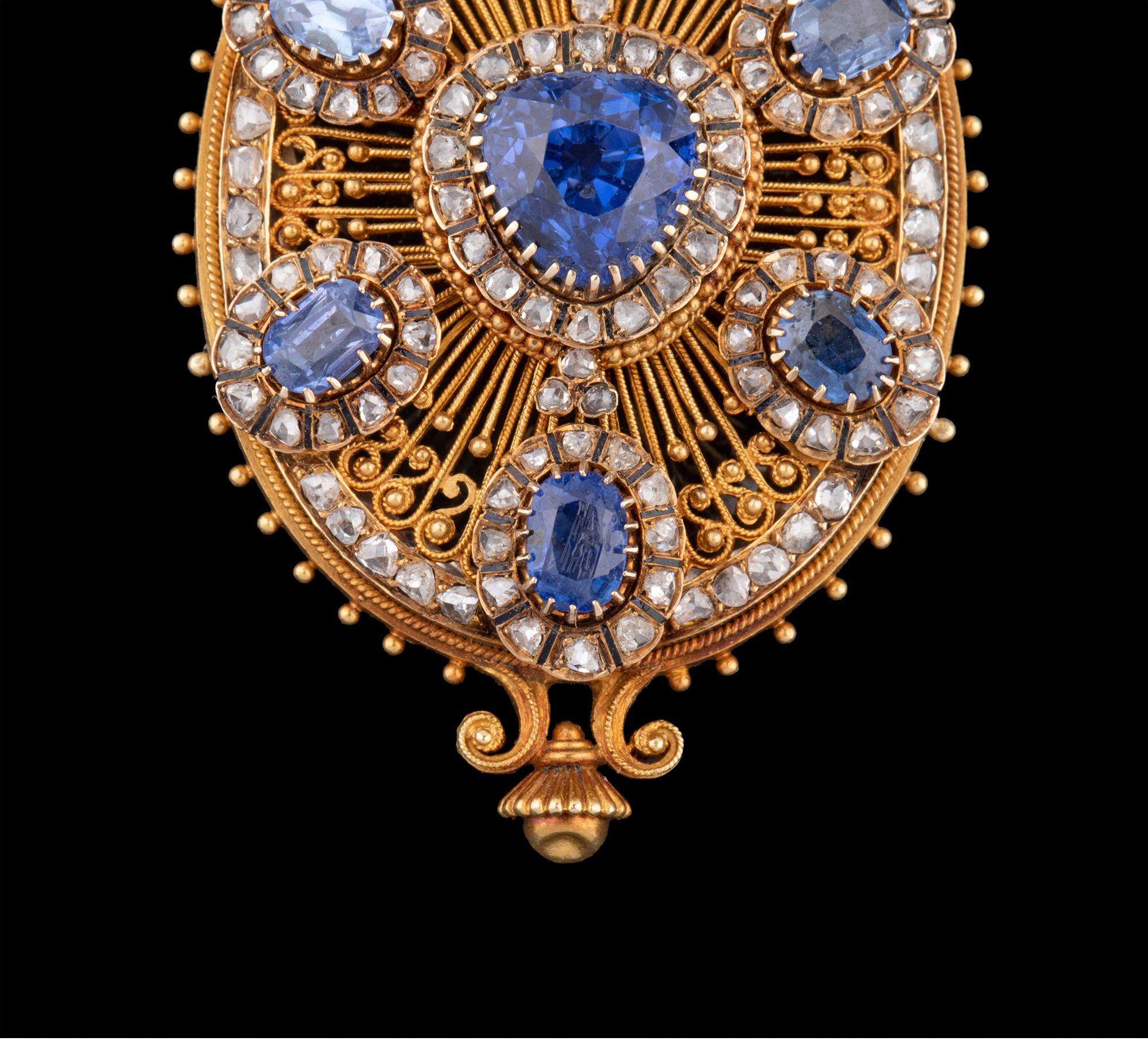 独角鹿西洋古董珠宝首饰18K黄金镂空累丝镶嵌蓝宝石钻石吊坠项链