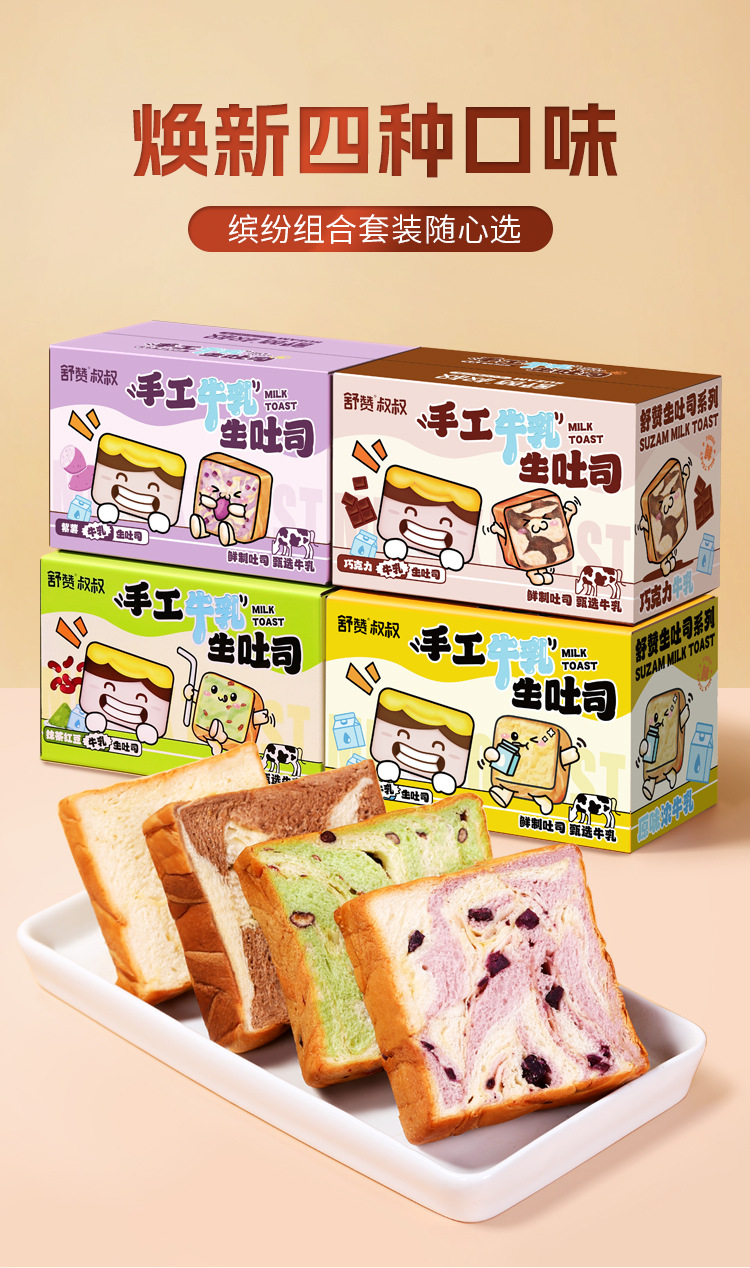 【松软湿润柔韧有嚼劲!牛乳生吐司】营养充饥的常备!简单快捷又美味,外层松软,内里入口即化。红豆巧克力牛乳厚切吐司整箱早餐三明治切片面包营养充饥零食—DD健康