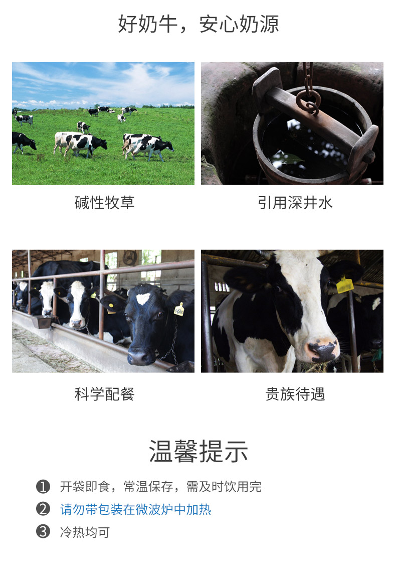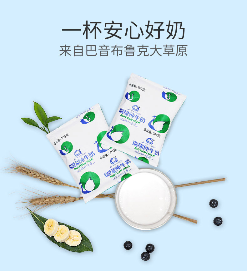 【品牌】瑞缘 【产地】新疆·巴州 【配料表】生牛乳 【净含量】200g*20袋 【生产日期】见包装喷码 【保质期】60天 【贮存方式】常温保存,开袋即饮 【生产许可证号】SC10565280100319 【执行标准】GB25190 【发货地】陕西咸阳 【包装方式】牛奶箱 【发货时效】下单后48小时内 【物流方式】中通快递 【不发货区域】新疆、西藏、内蒙、海南不发。县级以下村镇地址如下单则不保时效,破损不售后